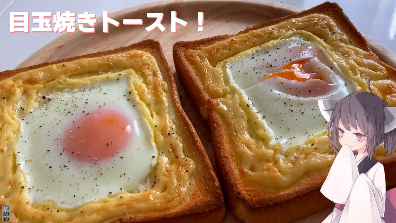 今回はパン屋さんに置いているような目玉焼きトースト!<br>毎日作れちゃうくらいお手軽なのでぜひお試しください!<br>【材料】<br>食パン6枚切り2枚<br>マヨネーズ<br>卵2個<br><br>最近twitchでゲーム配信やってます!実はアバターオリジナル!<br>是非遊びに来てください!フォローもよろしくお願いします!<br><a href="https://www.twitch.tv/arch2801_1" target="_blank" rel="noopener nofollow">https://www.twitch.tv/arch2801_1</a><br><br>※YouTube側でも投稿しています!<br><a href="https://youtu.be/0Pgqv-s3pgQ" target="_blank" rel="noopener nofollow">https://youtu.be/0Pgqv-s3pgQ</a><br>そして是非チャンネル登録もお願いします!<br><a href="http://www.youtube.com/channel/UCgj7RfHha73UONAF-zJVidg?view_as=subscriber?sub_confirmation=1" target="_blank" rel="noopener nofollow">http://www.youtube.com/channel/UCgj7RfHha73UONAF-zJVidg?view_as=subscriber?sub_confirmation=1</a><br><br>立ち絵:桧野 拓海様<br><a href="https://seiga.nicovideo.jp/seiga/im10613314" target="_blank" rel="noopener nofollow">https://seiga.nicovideo.jp/seiga/im10613314</a><br>フリーBGM MunMun様<br><a href="https://musmus.main.jp/info.html" target="_blank" rel="noopener nofollow">https://musmus.main.jp/info.html</a><br>ミスキー:@arch2801 | Misskey.io<br>Twitter:<a href="https://twitter.com/arch2801_" target="_blank" rel="noopener nofollow">https://twitter.com/arch2801_</a>