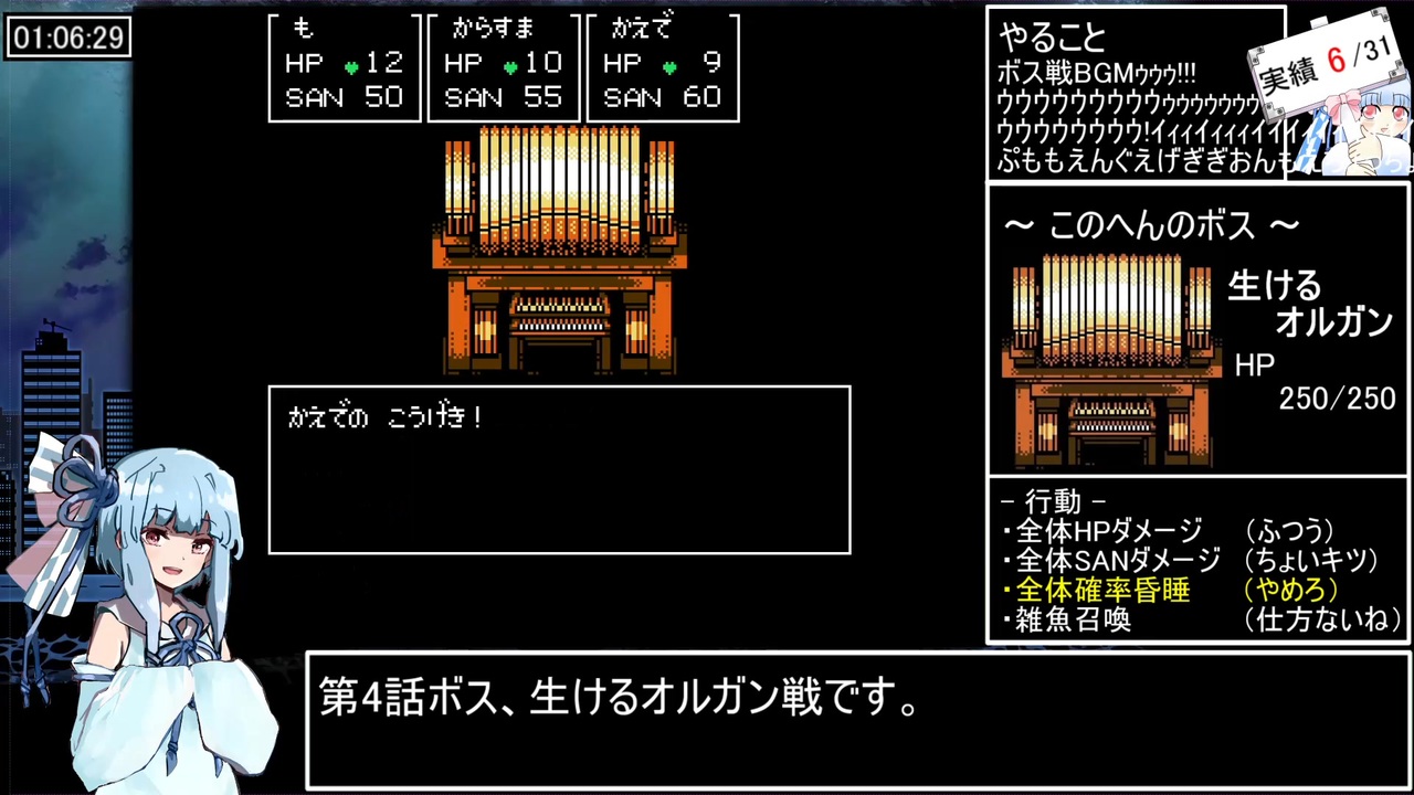 音聴くってレベルじゃない初part4です。レイアウト変えてみた。右枠が広くてうれしい(小並感<br><br>第4話開始から第4話幕間まで<br><br>前:<a href="https://www.nicovideo.jp/watch/sm42684839" class="watch">sm42684839</a> 次:<a href="https://www.nicovideo.jp/watch/sm42795009" class="watch">sm42795009</a><br>Part1:<a href="https://www.nicovideo.jp/watch/sm42579010" class="watch">sm42579010</a><br><br>PC版:<a href="https://www.dlsite.com/home/work/=/product_id/RJ378466.html" target="_blank" rel="noopener nofollow">https://www.dlsite.com/home/work/=/product_id/RJ378466.html</a><br>Switch版:<a href="https://store-jp.nintendo.com/list/software/70010000062217.html" target="_blank" rel="noopener nofollow">https://store-jp.nintendo.com/list/software/70010000062217.html</a><br><br>制作サークル様の公式サイトはこ↑こ↓<br>「AlchemyBlue(アルケミーブルー)」<a href="https://www.alchemyblue.net/" target="_blank" rel="noopener nofollow">https://www.alchemyblue.net/</a><br><br>制作者様のTwitterはこ↑こ↓<br>「白飯マコト クトゥルフ神話RPGシリーズ」<a href="https://twitter.com/MarronBlanc" target="_blank" rel="noopener nofollow">https://twitter.com/MarronBlanc</a><br /><br>投稿者のX <a href="https://twitter.com/oketyu39" target="_blank" rel="noopener nofollow">https://twitter.com/oketyu39</a><br>チャート置いてます。他に何かあったらどうぞ。Xってなんだよ