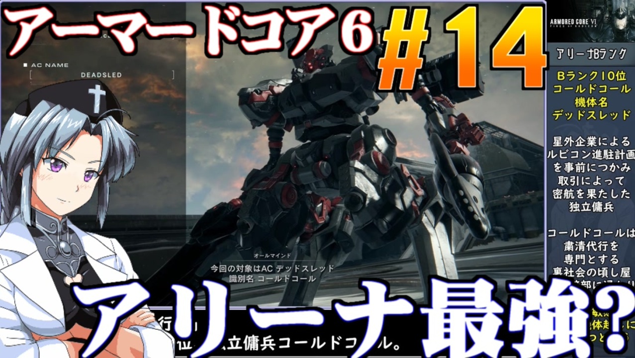 初申し訳ないがショットガン編成はNGなので初投稿です。<br>日雇いその22.オーネスト・ブルートゥ排除<br><br>◆アーマードコア6◆<br>1997年にフロムソフトウェアから発売されたハイスピードメカアクション<br>メカパーツの組み換えで戦場を戦い抜く愛機を作る<br>本作は2023年8月25日に発売されたARMOREDCOREⅥのsteam版。<br>桜乃そら実況動画<br><br>◆ニコニコクリエイターサポート<br><a href="https://creator-support.nicovideo.jp/registration/1203831" target="_blank" rel="noopener nofollow">https://creator-support.nicovideo.jp/registration/1203831</a><br>動画制作の励みになります<br><br>◆Twitter<br><a href="https://twitter.com/ikamono8bit" target="_blank" rel="noopener nofollow">https://twitter.com/ikamono8bit</a><br>◆youtube<br><a href="http://www.youtube.com/c/IkamonoY" target="_blank" rel="noopener nofollow">http://www.youtube.com/c/IkamonoY</a><br><br>シリーズまとめ <a href="https://www.nicovideo.jp/user/1203831/series" target="_blank" rel="noopener nofollow">https://www.nicovideo.jp/user/1203831/series</a><br>作った動画全部 <a href="https://www.nicovideo.jp/mylist/42963985" target="_blank" rel="noopener">mylist/42963985</a><br>作った動画全部2<a href="https://www.nicovideo.jp/mylist/70404393" target="_blank" rel="noopener">mylist/70404393</a>