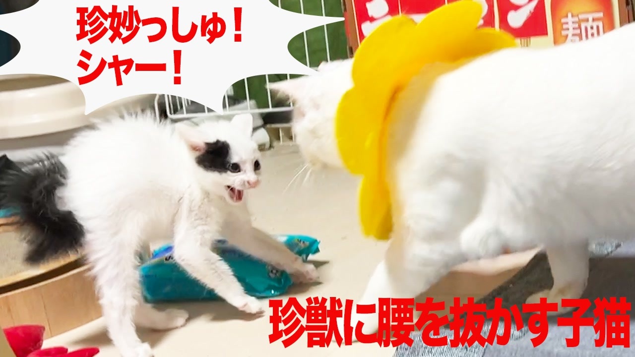 多頭崩壊からの保護子猫、珍獣に腰を抜かす 6:00
