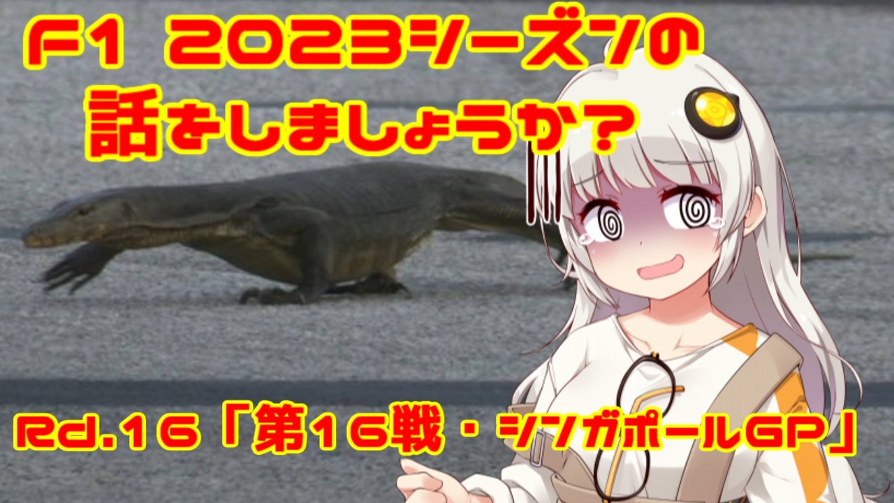 「シンガポールGP名物、大トカゲ」by紲星あかり<br><br><br>おはこんばんちは、紲星あかりです。<br>この動画は、F1 2023年シーズンをダイジェストでお送りしています。<br>今回は第16戦・シンガポールGPをお送りします。<br>ヨーロッパラウンドが終了し、F1はアジア、南北アメリカ大陸、中東を渡る<br>フライアウェイに突入!シーズン終盤のアジアラウンドの幕開けとなる<br>シンガポールを制するのは果たして誰に!?<br><br><br><br><span style="color: red;">(ご注意)この動画の情報は真実とは限りません。また、誤字・脱字が含まれる場合があります。ご了承ください。</span><br><br>前→第15戦・イタリアGP <a href="https://www.nicovideo.jp/watch/sm42731560" class="watch">sm42731560</a><br>次→第17戦・日本GP <a href="https://www.nicovideo.jp/watch/sm42820974" class="watch">sm42820974</a><br><br>F12023シーズンの話をしましょうか?マイリスト→<a href="https://www.nicovideo.jp/mylist/74761174" target="_blank" rel="noopener">mylist/74761174</a><br> <br><br>うp主のF1動画シリーズ<br><br>F12022シーズンの話をしましょうか?マイリスト→<a href="https://www.nicovideo.jp/mylist/72892585" target="_blank" rel="noopener">mylist/72892585</a><br>F12021シーズンの話をしましょうか?マイリスト→<a href="https://www.nicovideo.jp/mylist/70735663" target="_blank" rel="noopener">mylist/70735663</a><br>F12020シーズンの話をしましょうか?マイリスト→<a href="https://www.nicovideo.jp/mylist/67651731" target="_blank" rel="noopener">mylist/67651731</a> <br>F12019シーズンの話をしましょうか?<span style="color: #000000; font-size: 14px;">マイリスト</span><span style="color: #000000; font-size: 13px;">→</span><a href="https://www.nicovideo.jp/mylist/64678414" target="_blank" rel="noopener">mylist/64678414</a><br>F12018シーズンの話をしましょうか?<span style="color: #000000; font-size: 14px;">マイリスト</span><span style="color: #000000; font-size: 13px;">→</span><a href="https://www.nicovideo.jp/mylist/61514606" target="_blank" rel="noopener">mylist/61514606</a><br>F1の話をしましょうか?マイリスト→<a href="https://www.nicovideo.jp/mylist/40499353" target="_blank" rel="noopener">mylist/40499353</a><br>F1の話をしましょうか?OPフルバージョン→<a href="https://www.nicovideo.jp/mylist/59030210" target="_blank" rel="noopener">mylist/59030210</a><br>F1 CM集→<a href="https://www.nicovideo.jp/mylist/57297507" target="_blank" rel="noopener">mylist/57297507</a><br><br>