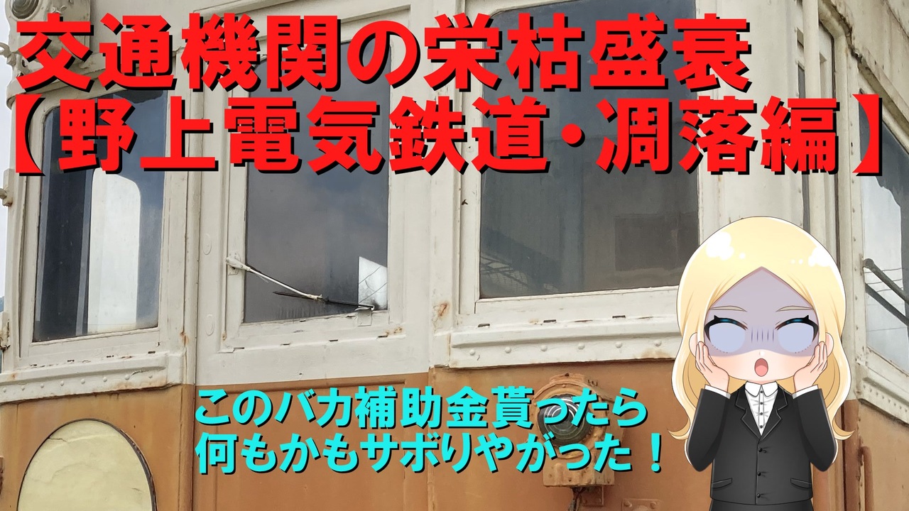 今回ご紹介するのは和歌山県海南市と野上町(現・紀美野町)を結んでいた野上電気鉄道。戦前製の車両が平成まで残り、ファンの間では「動く電車の博物館」とも言われていた鉄道会社でしたが、その一方で悪い意味で記憶に残ってしまった「伝説の鉄道会社」でもありました。<br><br>・・・まあ、迷列車シリーズ視聴者の皆様なら結末はご存じだとは思いますが、その伝説を改めてじっくりご覧下さい。前編は野上電鉄が補助金にどっぷり依存してライフゼロになるまで。<br><br>後編はこっち→<a href="https://www.nicovideo.jp/watch/sm42828971" class="watch">sm42828971</a><br /><span style="color: #000000; font-size: 14px;">迷航空会社列伝</span><span style="color: #006699; font-size: 14px;"><a href="https://www.nicovideo.jp/mylist/24098760" target="_blank" rel="noopener">mylist/24098760</a></span><span style="color: #000000; font-size: 14px;"> 迷列車北陸編</span><span style="color: #006699; font-size: 14px;"><a href="https://www.nicovideo.jp/mylist/19084652" target="_blank" rel="noopener">mylist/19084652</a> </span><span style="color: #000000; font-size: 14px;">東海道交通戦争</span><span style="color: #006699; font-size: 14px;"><a href="https://www.nicovideo.jp/mylist/57958388" target="_blank" rel="noopener">mylist/57958388</a></span><span style="color: #000000; font-size: 14px;"> 交通機関の栄枯盛衰 </span><a href="https://www.nicovideo.jp/mylist/66898301" target="_blank" rel="noopener">mylist/66898301</a><br><span style="color: #000000; font-size: 14px;">ブログ→</span><span style="color: #006699; font-size: 14px;"><a href="http://www.meihokuriku-alps.com" target="_blank" rel="noopener nofollow">http://www.meihokuriku-alps.com</a></span><br>note→<a href="https://note.com/meihokuriku" target="_blank" rel="noopener nofollow">https://note.com/meihokuriku</a><br><span style="color: #000000; font-size: 14px;">使用BGM<br>甘茶の音楽工房様 </span><span style="color: #006699; font-size: 14px;"><a href="http://amachamusic.chagasi.com/index.html" target="_blank" rel="noopener nofollow">http://amachamusic.chagasi.com/index.html</a></span><br><span style="color: #000000; font-size: 14px;">魔王魂様 </span><span style="color: #006699; font-size: 14px;"><a href="https://maoudamashii.jokersounds.com/list/bgm5.html" target="_blank" rel="noopener nofollow">https://maoudamashii.jokersounds.com/list/bgm5.html</a></span>
