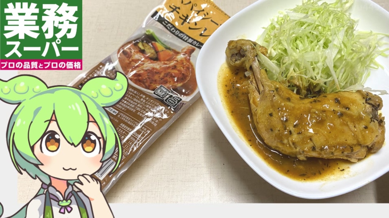 業務スーパーの鶏肉をカレーで煮込んだヤツです。<br><br><br>【参考】<br>スパイシーカレーチキンレッグ(業務スーパー)<br><a href="https://www.gyomusuper.jp/product/detail.php?go_id=6823" target="_blank" rel="noopener nofollow">https://www.gyomusuper.jp/product/detail.php?go_id=6823</a><br><br><br>【使用した素材】(※敬称略)<br>(合成音声)VOICEVOX/ずんだもん/四国めたん/<br><a href="https://voicevox.hiroshiba.jp/" target="_blank" rel="noopener nofollow">https://voicevox.hiroshiba.jp/</a><br>(立ち絵)坂本アヒル<br><a href="https://seiga.nicovideo.jp/seiga/im10788496" target="_blank" rel="noopener">im10788496</a>/<a href="https://seiga.nicovideo.jp/seiga/im10791276" target="_blank" rel="noopener">im10791276</a><br>(楽曲)甘茶の音楽工房/「楽しい麦畑」「お城の舞踏会」<br><a href="https://amachamusic.chagasi.com/" target="_blank" rel="noopener nofollow">https://amachamusic.chagasi.com/</a><br><br>