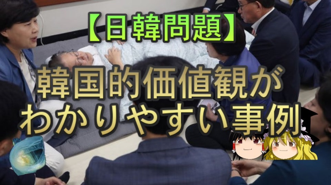 さて、本日は最近起きた韓国関連の事例の韓国的価値観について扱っていきます。<br>中秋のどようび<br>本日のブログ記事<br><a href="https://oogchib.hateblo.jp/entry/2023/09/24/204839" target="_blank" rel="noopener nofollow">https://oogchib.hateblo.jp/entry/2023/09/24/204839</a><br><br>元記事<br>韓国的価値観のわかりやすい事例<br><a href="https://oogchib.hateblo.jp/entry/2023/09/21/021411" target="_blank" rel="noopener nofollow">https://oogchib.hateblo.jp/entry/2023/09/21/021411</a><br><br>関連動画<br>【日韓問題】韓国独特の「ウリ」と「ナム」の概念 前編<br><a href="https://www.nicovideo.jp/watch/sm31815129" class="watch">sm31815129</a><br>【日韓問題】韓国では被害者が「偉い」<br><a href="https://www.nicovideo.jp/watch/sm32175853" class="watch">sm32175853</a><br>【日韓問題】韓国の作戦<br><a href="https://www.nicovideo.jp/watch/sm34789120" class="watch">sm34789120</a><br>【ゆっくり解説】韓国人からは日本がどう見えている?<br><a href="https://www.nicovideo.jp/watch/sm42650808" class="watch">sm42650808</a><br><br>注意<br>・この動画は「日韓の価値観の違い」を扱っています<br><br>・うp主のスタンスは「価値観に善悪や優劣は存在しない」というものです<br><br>・相手が不法を働いているからとこちらが不法をして良い理由にはなりません<br><br>・自身の常識が相手にとっても常識とは限りません、「他者がそれを見たら<br>どう思うか」という客観性を常に持ちましょう。<br><br>・日常生活で注意する程度には言動に注意を心がけてください<br><br>・リクエストは原則受け付けていません<br><br>・引用ソースへのリンクが同時掲載のブログにあります<br><br>・毎週日曜日更新<br><br>引用ソースと動画のテキストをブログ日韓問題(初心者向け)のほうへ掲載しています。<br><br>日韓問題(初心者向け)<br><a href="https://oogchib.hateblo.jp/" target="_blank" rel="noopener nofollow">https://oogchib.hateblo.jp/</a><br><br>暇つぶしにどうぞ<br><a href="http://ooguchib.blog.fc2.com/" target="_blank" rel="noopener nofollow">http://ooguchib.blog.fc2.com/</a> <br><br>twitter @ooguchib<br><a href="https://twitter.com/ooguchib" target="_blank" rel="noopener nofollow">https://twitter.com/ooguchib</a><br><br>前 <a href="https://www.nicovideo.jp/watch/sm42774617" class="watch">sm42774617</a> <a href="https://www.nicovideo.jp/mylist/59069876" target="_blank" rel="noopener">mylist/59069876</a> 次 <a href="https://www.nicovideo.jp/watch/sm42834053" class="watch">sm42834053</a><br><br>番外編マイリスト<br><a href="https://www.nicovideo.jp/mylist/62992608" target="_blank" rel="noopener">mylist/62992608</a><br><br>YouTube版<br><a href="https://youtu.be/q-KniL1g0AU" target="_blank" rel="noopener nofollow">https://youtu.be/q-KniL1g0AU</a><br>