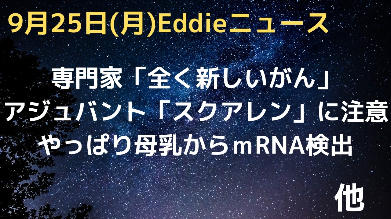 参考URL<br><a href="https://vigilantnews.com/post/mrna-breastfeeding-covid-19-vaccine-mrna-found-in-breast-milk" target="_blank" rel="noopener nofollow">https://vigilantnews.com/post/mrna-breastfeeding-covid-19-vaccine-mrna-found-in-breast-milk</a><br><br><a href="https://expose-news.com/2023/09/24/mrna-injections-make-a-third-of-workers-sick/" target="_blank" rel="noopener nofollow">https://expose-news.com/2023/09/24/mrna-injections-make-a-third-of-workers-sick/</a><br><br><a href="https://expose-news.com/2023/09/24/squalene-in-vaccines-cause-our-immune-systems-to/" target="_blank" rel="noopener nofollow">https://expose-news.com/2023/09/24/squalene-in-vaccines-cause-our-immune-systems-to/</a><br />Eddieと申します。<br>少し引棒めいたニュースを集めて喋っています。<br>よろしくお願いします。<br><br>23時過ぎYouTubeライブ配信(マイペース配信中)<br>「Eddieのホンマやと思うニュース3」<br><a href="https://www.youtube.com/channel/UCKaftD6X-qeHC5Vd9CMCedw" target="_blank" rel="noopener nofollow">https://www.youtube.com/channel/UCKaftD6X-qeHC5Vd9CMCedw</a><br><br>ニコ生は毎週土曜21時半〜(もしくは日曜21時半〜)<br><br>twitter<br>@Eddie2travel<br><br>YouTubeライブ配信1000回記念グッズなど販売中<br><a href="https://suzuri.jp/Eddie-Homma3" target="_blank" rel="noopener nofollow">https://suzuri.jp/Eddie-Homma3</a><br><br>