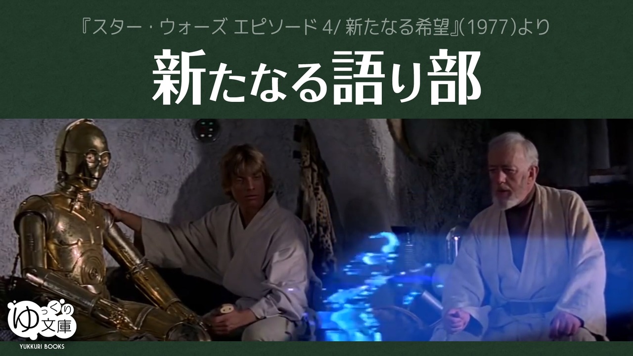 <span style="color: red;"><strong>122x10 ゆっくりとともにあらんことを──</strong></span><br>パロディはストックがあって、毎日作ってるわけじゃないと言ったが、まぁ、そういうことだ。<br>小出しするのもアレだから、3本セットで。<br>〆切まであと4日。そわそわ。<br><br>(元ネタ)<br>『スター・ウォーズ エピソード4/新たなる希望』(1977)より<br><br>(こちらもどうぞ)<br><a href="https://www.nicovideo.jp/watch/sm42808188" class="watch">sm42808188</a> 【セブン】インディペンデントな10周年<br><a href="https://www.nicovideo.jp/watch/sm42778606" class="watch">sm42778606</a> 【筋之助】替え歌『投票っていいな』<br><br>●10周年記念ベストエピソード総選挙<br>投票サイト:<a href="https://forms.gle/JvhawevygFr2SkYb7" target="_blank" rel="noopener nofollow">https://forms.gle/JvhawevygFr2SkYb7</a><br>告知動画 <a href="https://www.nicovideo.jp/watch/sm42700434" class="watch">sm42700434</a><br>イベント運営Xアカウント:<a href="https://twitter.com/Bunko_10th" target="_blank" rel="noopener nofollow">https://twitter.com/Bunko_10th</a><br><br>●ゆっくり文庫:投票支援パロディ<br><a href="https://www.nicovideo.jp/watch/sm42823647" class="watch">sm42823647</a> 選ぶのはきみだ<br><a href="https://www.nicovideo.jp/watch/sm42822495" class="watch">sm42822495</a> 今度は投票だ<br><a href="https://www.nicovideo.jp/watch/sm42817735" class="watch">sm42817735</a> あの子はどこに?<br><a href="https://www.nicovideo.jp/watch/sm42814772" class="watch">sm42814772</a> マジギレ父子の投票<br><a href="https://www.nicovideo.jp/watch/sm42810972" class="watch">sm42810972</a> 新たなる語り部★<br><a href="https://www.nicovideo.jp/watch/sm42807294" class="watch">sm42807294</a> 真夜中のお散歩かい?<br><a href="https://www.nicovideo.jp/watch/sm42798114" class="watch">sm42798114</a> 今は投票が大事だ<br><a href="https://www.nicovideo.jp/watch/sm42798090" class="watch">sm42798090</a> うp主たちの沈黙<br><a href="https://www.nicovideo.jp/watch/sm42782070" class="watch">sm42782070</a> 投票後のVKテスト<br><a href="https://www.nicovideo.jp/watch/sm42782018" class="watch">sm42782018</a> パーマー大統領の決断<br><a href="https://www.nicovideo.jp/watch/sm42782010" class="watch">sm42782010</a> 赤い薬と青い薬<br><a href="https://www.nicovideo.jp/watch/sm42773063" class="watch">sm42773063</a> 文庫ファンの日誌<br><a href="https://www.nicovideo.jp/watch/sm42773039" class="watch">sm42773039</a> きみの投票がモチベになる<br><a href="https://www.nicovideo.jp/watch/sm42772960" class="watch">sm42772960</a> 落ち着いて聞いてください<br>パロディ全部:<a href="https://www.nicovideo.jp/mylist/75786237" target="_blank" rel="noopener">mylist/75786237</a><br><br>(ゆっくり文庫について)<br>全部:<a href="https://www.nicovideo.jp/mylist/74874627" target="_blank" rel="noopener">mylist/74874627</a><br>近況:<a href="https://twitter.com/trynext" target="_blank" rel="noopener nofollow">https://twitter.com/trynext</a><br>文庫ラジオ:co5782398<br>---<br><br><br><br><a target="_blank" href="https://qa.nicovideo.jp/faq/show/19424?site_domain=default" style="font-size: 13px;color: #657586; text-decoration: underline; line-height: 1.4">この動画は投稿者によって修正されました</a>