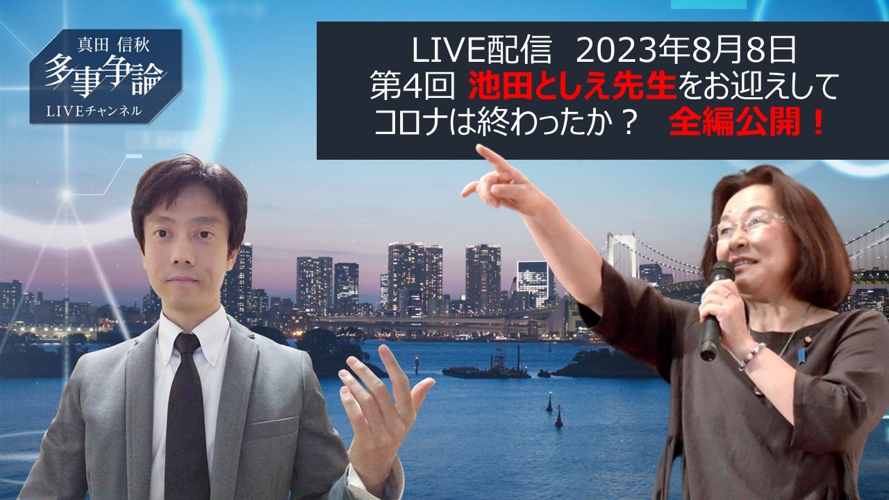 日野市議会議員としてのみならず、さまざまな活動を先頭にたって推進しておられる<br>池田としえ先生をお招きして、ここでしか聞けない話をお伺いしたいと思っています。<br><br> コロナ茶番は第三次世界大戦だった<br> 緊急事態条項を阻止し、子供達を守ろう!<br><br> 日野市議会議員 6期目<br> 全国子宮頸がんワクチン(HPVV)被害者連絡会事務局長<br> 新型コロナを考える会事務局長<br> 全国有志議員の会代表<br> チーム日本代表<br>日本国独立宣言論 私は独立を宣言する! 真田信秋<br><a href="https://amzn.to/3D90lwx" target="_blank" rel="noopener nofollow">https://amzn.to/3D90lwx</a><br> <br>主権者命令書 主権破壊を許すな 売国傀儡日本政府を解体せよ<br><a href="https://amzn.to/49z51b5" target="_blank" rel="noopener nofollow">https://amzn.to/49z51b5</a><br> <br>マトリックス洗脳社会 グローバル企業ディストピア<br><a href="https://amzn.to/4g2YmZg" target="_blank" rel="noopener nofollow">https://amzn.to/4g2YmZg</a><br><br>メディア廃棄宣言 高橋清隆さん<br><a href="https://amzn.to/3BfdYKg" target="_blank" rel="noopener nofollow">https://amzn.to/3BfdYKg</a>