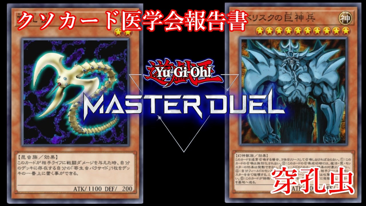 十四回目の報告になりますあまくだり氏リスペクトです<br>偉大なる本家様:<a href="https://www.nicovideo.jp/user/82678858/series/321504" target="_blank" rel="noopener nofollow">https://www.nicovideo.jp/user/82678858/series/321504</a><br>対人環境では流石に厳しいか・・・<br><br>ゼラチンさんのURL:<a href="https://www.nicovideo.jp/user/59790359/series/405986?ref=user_series" target="_blank" rel="noopener nofollow">https://www.nicovideo.jp/user/59790359/series/405986?ref=user_series</a><br>非公式クソカード医学会サーバー:<a href="https://discord.gg/pejHy5mQFT" target="_blank" rel="noopener nofollow">https://discord.gg/pejHy5mQFT</a><br><br>今回データベースに登録したデッキは以下の通りです<br>データベースURL:<a href="https://www.db.yugioh-card.com/yugiohdb/" target="_blank" rel="noopener nofollow">https://www.db.yugioh-card.com/yugiohdb/</a><br>医学会S級53位 穿孔骨クラッシャー@2.8(患者:穿孔虫)<br><br>ワロス皇帝さん ゼラチンさん んじゃらさん<br>亜砲さん アニソンで会話する男さん ルラさん<br>Kamiwoさん 運命計画さん アトレルアさん<br>Grassさん ラッテさん プクプクさん<br>SOUZI78さん 黒淡雪さん M.H.さん<br>kazenariさん ニャンニャンさん ボルキャンサーさん<br>フェシルさん 一体感さん ばんてふさん<br>65等兵さん sutaraiさん はなびしさん<br>mottuさん seki-rouさん ニコ中さん<br>ラピスラズリさん Kruさん FLATさん<br>やっこさん もんちるさん アイカワカナミさん<br>耄碌さん クイックスクエアさん 面会人さん<br>キラークイーンさん s.nさん タコすさん<br>マッチさん sumibiyakiさん The(ジイ)さん<br>nouxemuさん クロスさん venさん<br>yuiさん 名無しさん NO NAMEさん<br>ふぁるかたさん BLACKLENさん クォムレットさん<br>初音ミックさん タルさん アルさん<br>Kamiwoさん マタ・ヌイさん raskさん<br>カカシラスさん あおさん ジグザさん<br>ざぶとんさん フェルトレイさん チーマヨロールさん<br>ヾ(>ヮ<*)れもにいいいいいいさん ひさのんさん malcさん<br>UGMsさん 雪車町地蔵さん ひとでっちマンさん<br>ゾゾオカさん やるきなすさん 寄生虫パラサイドさん<br>セイさん 猫者さん パラサイドさん<br>抜け殻さん ひなさん AULTさん<br>アスノさん ゲストさん とびこさん<br>海 騒潮さん lonさん XENOさん<br>アマツナギさん なっぱ提督さん<br>広告ありがとうございます!<br><br>治療案確定<br>CX 激烈華戦艦タオヤメ(リプレイ消しちゃった♡)