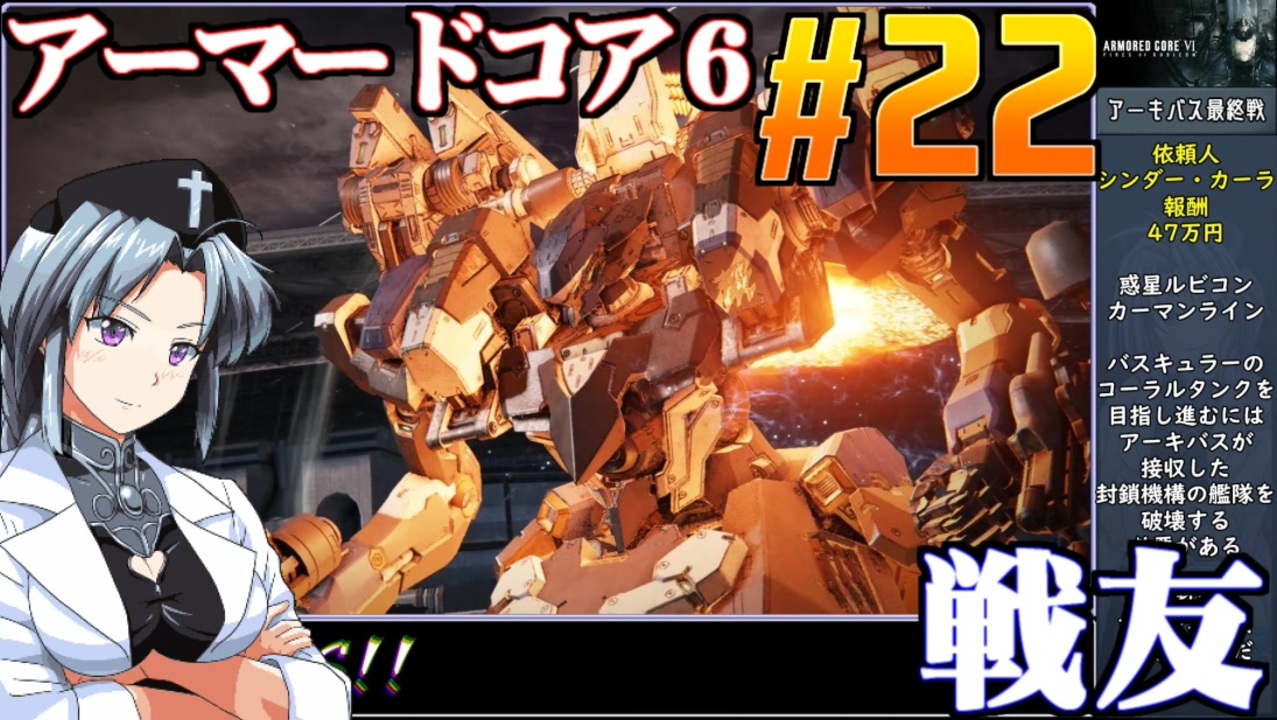 初星の総意VS贖罪の意志なので初投稿です。<br>日雇いその34.対アーキバス最終決戦<br><br>◆アーマードコア6◆<br>1997年にフロムソフトウェアから発売されたハイスピードメカアクション<br>メカパーツの組み換えで戦場を戦い抜く愛機を作る<br>本作は2023年8月25日に発売されたARMOREDCOREⅥのsteam版。<br>桜乃そら実況動画<br><br>◆ニコニコクリエイターサポート<br><a href="https://creator-support.nicovideo.jp/registration/1203831" target="_blank" rel="noopener nofollow">https://creator-support.nicovideo.jp/registration/1203831</a><br>動画制作の励みになります<br><br>◆Twitter<br><a href="https://twitter.com/ikamono8bit" target="_blank" rel="noopener nofollow">https://twitter.com/ikamono8bit</a><br>◆youtube<br><a href="http://www.youtube.com/c/IkamonoY" target="_blank" rel="noopener nofollow">http://www.youtube.com/c/IkamonoY</a><br><br>シリーズまとめ <a href="https://www.nicovideo.jp/user/1203831/series" target="_blank" rel="noopener nofollow">https://www.nicovideo.jp/user/1203831/series</a><br>作った動画全部 <a href="https://www.nicovideo.jp/mylist/42963985" target="_blank" rel="noopener">mylist/42963985</a><br>作った動画全部2<a href="https://www.nicovideo.jp/mylist/70404393" target="_blank" rel="noopener">mylist/70404393</a>