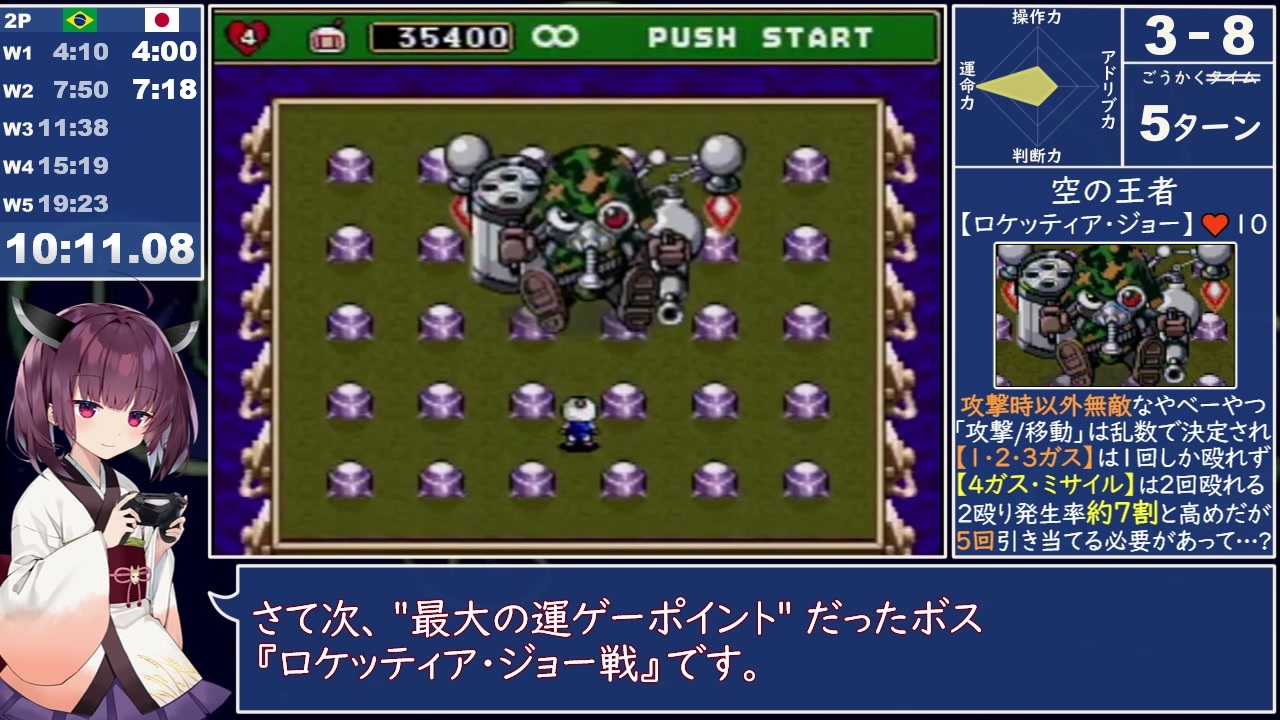 <span style="font-size: 16px;"><strong>初挑戦投稿です。</strong></span><br><br>脳内情報をまとめるのに半年かかりました。引き算は苦手です。<br><br>スパボン2解説のウケがよかったこともあり、今回だいぶ"調子"に乗りました。<br>というか乗らないと解説できない体になってる。誰かブレーキ直してくれ。<br><br><br>【プレイ環境】SFC互換機(FC DUAL)×純正コントローラー<br>1-1無操作検証により、実機(壊れかけ)との速度差がないことは確認済。<br>音は多少遅れているのでそこは注意。<br><br>いいね欄は「スパボン4RTAの魅力」<br><br>大元の映像はコレ → <a href="https://www.youtube.com/watch?v=we0aMUtw-DI" target="_blank" rel="noopener nofollow">https://www.youtube.com/watch?v=we0aMUtw-DI</a><br>何かあればtwitterで → <a href="https://twitter.com/brast9999" target="_blank" rel="noopener nofollow">https://twitter.com/brast9999</a><br><br>(追記)<br>やはり解説が十分でないと感じるステージもあるみたいですね。すまねぇ尺がねぇんだ!<br>「追加解説ほしい!」ってトコがあればやるかもしれんので、どんどん言ってくれると助かります!<br>※3-5と5-5の一部だけは既にあります(固定ツイからどうぞ) 溜まったら動画でまとめるかもしれんね。