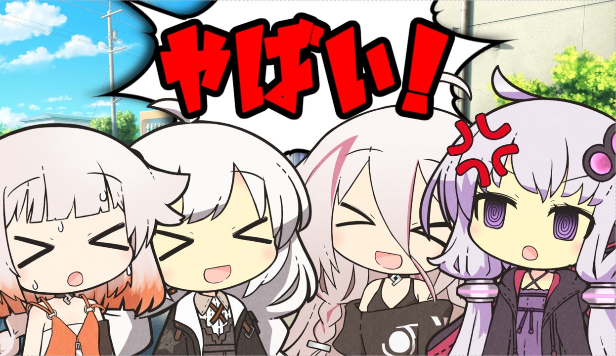 やばいかも<br><br>使用した立ち絵<br><br>立ち紲星あかり素材<a href="https://seiga.nicovideo.jp/seiga/im10559196" target="_blank" rel="noopener nofollow">https://seiga.nicovideo.jp/seiga/im10559196</a><br>立ち結月ゆかり素材 <a href="https://seiga.nicovideo.jp/seiga/im10564427" target="_blank" rel="noopener nofollow">https://seiga.nicovideo.jp/seiga/im10564427</a><br>立ちONE素材 <a href="https://seiga.nicovideo.jp/seiga/im10610721" target="_blank" rel="noopener nofollow">https://seiga.nicovideo.jp/seiga/im10610721</a><br>立ちIA素材 <a href="https://seiga.nicovideo.jp/seiga/im10626084" target="_blank" rel="noopener nofollow">https://seiga.nicovideo.jp/seiga/im10626084</a><br><br>いらすとや<br>効果音ラボ<br>