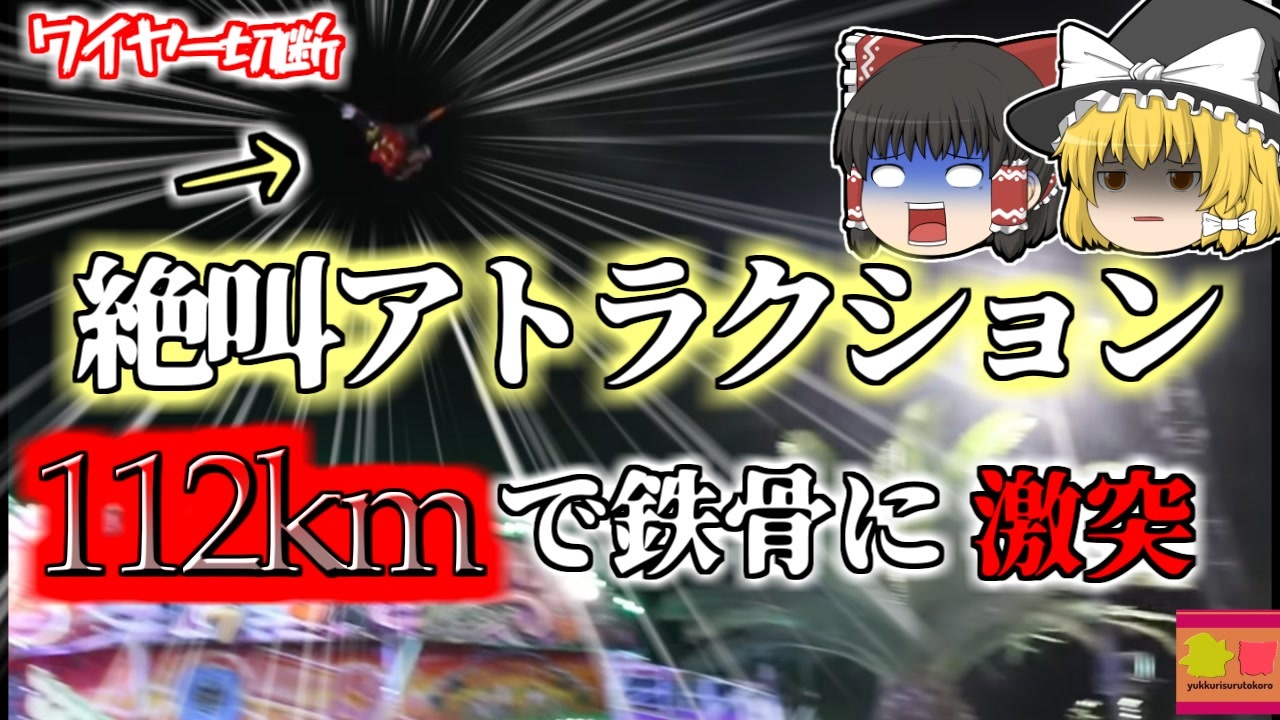 <a href="#" class="seekTime" data-seekTime="00:00" onclick="seekNicoPlayer('#00:00'); return false;">#00:00</a> 冒頭挨拶<br><a href="#" class="seekTime" data-seekTime="00:27" onclick="seekNicoPlayer('#00:27'); return false;">#00:27</a> 視聴上の注意<br><a href="#" class="seekTime" data-seekTime="1:00" onclick="seekNicoPlayer('#1:00'); return false;">#1:00</a> 本編開始<br><a href="#" class="seekTime" data-seekTime="1:22" onclick="seekNicoPlayer('#1:22'); return false;">#1:22</a> テーマパーク<br><a href="#" class="seekTime" data-seekTime="2:03" onclick="seekNicoPlayer('#2:03'); return false;">#2:03</a> 利用客のAさん<br><a href="#" class="seekTime" data-seekTime="2:34" onclick="seekNicoPlayer('#2:34'); return false;">#2:34</a> 特殊な滑空アトラクション<br><a href="#" class="seekTime" data-seekTime="3:34" onclick="seekNicoPlayer('#3:34'); return false;">#3:34</a> 事故の瞬間<br><a href="#" class="seekTime" data-seekTime="4:32" onclick="seekNicoPlayer('#4:32'); return false;">#4:32</a> レスキュー隊のヘリで搬送<br><a href="#" class="seekTime" data-seekTime="5:24" onclick="seekNicoPlayer('#5:24'); return false;">#5:24</a> 強風の中利用されていた<br><a href="#" class="seekTime" data-seekTime="6:04" onclick="seekNicoPlayer('#6:04'); return false;">#6:04</a> ワイヤーの不具合<br><a href="#" class="seekTime" data-seekTime="6:27" onclick="seekNicoPlayer('#6:27'); return false;">#6:27</a> およそ時速112kmの速度が出ていた<br><a href="#" class="seekTime" data-seekTime="7:04" onclick="seekNicoPlayer('#7:04'); return false;">#7:04</a> パーク側の会見<br><br>今回紹介するのは、フランスのとあるテーマパークで発生した、アトラクション事故の一例です。<br>このパークは、世界各地で営業していた、非常に有名なテーマパークの一つで、ここフランスのリゾート地でも開園していました。施設では定番のアトラクションから、絶叫マシンと呼ばれる乗り物も各種営業しており、市内に暮らす男性「Aさん」はこの日、知人と共にこのパークを訪れ、そのうちの一つ、空中をハーネスを付けて滑空するという、少し変わったアトラクションを利用していましたが、その最中、突然ワイヤーの一本が外れ、Aさんは強風にあおられ大きくコースを逸れ、前方に両サイドに設置されていた、金属製の柱に激突。その後墜落し、地上にいた他の来場者女性にぶつかり、その女性も重傷を負いました。<br>直ちにアトラクションは一時閉鎖され、レスキュー隊が到着。<br>二人はドクターヘリによって、大学病院へと搬送されましたが、Aさんは頭部を約112kmの速度で金属にぶつけており、頭部が大きく損傷したことによって、この世を去りました。<br>実はこのパークでは、他の絶叫アトラクションで事故を起こしており、かねてから安全管理が疑問視されていました。<br><br><br />※この動画は過去の事件を知り、現在でも同じことが発生する危険性を再認識、関与しないように促すための動画であり、視聴者を扇動、動揺を誘うためのコンテンツではありません。<br><br>ご要望にお応えして、メンバーシップの開設を行いました。<br>下記URLからも登録可能ですので、ご興味がある方は是非ご参加ください。<br><a href="https://www.youtube.com/channel/UCcT5a1J7XJW7CLYI2RKl4pw/join" target="_blank" rel="noopener nofollow">https://www.youtube.com/channel/UCcT5a1J7XJW7CLYI2RKl4pw/join</a><br><br><br>Twitter<br>→<a href="https://twitter.com/yukkurisurutoko" target="_blank" rel="noopener nofollow">https://twitter.com/yukkurisurutoko</a><br><br>取り急ぎ、簡易的にですがマイリストを作りました。<br>【ゆっくり解説】事故・事件関係紹介リスト <br><a href="https://www.nicovideo.jp/mylist/71034319" target="_blank" rel="noopener nofollow">https://www.nicovideo.jp/mylist/71034319</a><br>【ゆっくり解説】放射線系事故<br><a href="https://www.nicovideo.jp/mylist/71034368" target="_blank" rel="noopener nofollow">https://www.nicovideo.jp/mylist/71034368</a><br>【ゆっくり解説】鉄道系事故・事件関連<br><a href="https://www.nicovideo.jp/mylist/71034379" target="_blank" rel="noopener nofollow">https://www.nicovideo.jp/mylist/71034379</a>