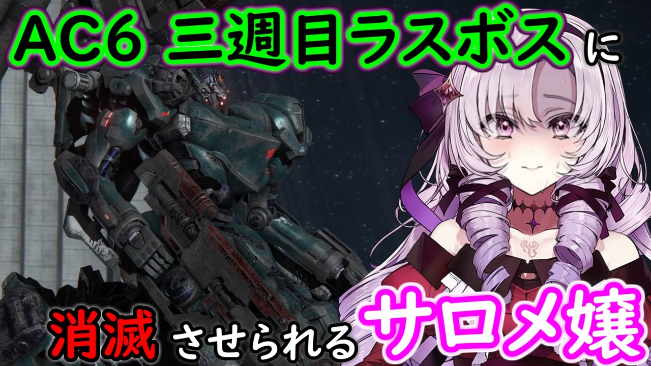 ※サムネの機体はラスボスではなくプレイヤー機体なので、サムネネタバレテロではないのでご安心下さい。<br>前回(<a href="https://www.nicovideo.jp/watch/sm42760586" class="watch">sm42760586</a>)の続編ではないけど続編でもおかしくないもの、コメントの声を受けて出来ました。<br><br>愛犬ロボ『621』(<a href="https://www.nicovideo.jp/watch/sm42835839" class="watch">sm42835839</a>)も含めてACMADに多くの再生・コメント・いいね・マイリス・広告諸々ありがとうございました!<br>普段はサロメ嬢MAD作ってるので野生の621達の「なんでこんな素材があるんだ」という声が新鮮でにっちゃりしました。<br>MADに使われるような語録がぽこじゃか飛び出す本配信、見よう!<br>そしてサロメイトも傑作AC6、やろう!<br><br>【壱百満天原サロメさん公式チャンネル】<br><a href="https://www.youtube.com/channel/UCgIfLpQvelloDi8I0Ycbwpg" target="_blank" rel="noopener nofollow">https://www.youtube.com/channel/UCgIfLpQvelloDi8I0Ycbwpg</a><br><br>AC6MADまとめマイリス <a href="https://www.nicovideo.jp/mylist/75856815" target="_blank" rel="noopener">mylist/75856815</a>