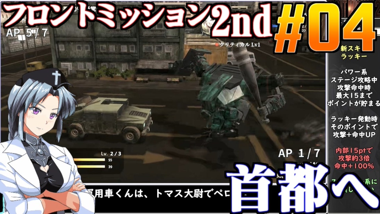 初首都高バトルなので初投稿です。<br>MISSION03.首都ダカ・トラック護衛作戦<br><br>◆FRONT MISSION 2nd:REMAKE◆<br>1997年スクウェアより発売されたSRPG<br>バングラデシュから国名を改めたアジアの国、アロルデシュを巡る陰謀と<br>二足歩行戦車・ヴァンツァーでの戦いをえがいた作品。<br>2023年10月5日switch版発売<br>本プレイはswitch版の桜乃そら実況動画<br><br>◆ニコニコクリエイターサポート<br><a href="https://creator-support.nicovideo.jp/registration/1203831" target="_blank" rel="noopener nofollow">https://creator-support.nicovideo.jp/registration/1203831</a><br>動画制作の励みになります<br><br>◆Twitter<br><a href="https://twitter.com/ikamono8bit" target="_blank" rel="noopener nofollow">https://twitter.com/ikamono8bit</a><br>◆youtube<br><a href="http://www.youtube.com/c/IkamonoY" target="_blank" rel="noopener nofollow">http://www.youtube.com/c/IkamonoY</a><br><br>シリーズまとめ <a href="https://www.nicovideo.jp/user/1203831/series" target="_blank" rel="noopener nofollow">https://www.nicovideo.jp/user/1203831/series</a><br>作った動画全部 <a href="https://www.nicovideo.jp/mylist/42963985" target="_blank" rel="noopener">mylist/42963985</a><br>作った動画全部2<a href="https://www.nicovideo.jp/mylist/70404393" target="_blank" rel="noopener">mylist/70404393</a><br>FM1シリーズ <a href="https://www.nicovideo.jp/mylist/44840712" target="_blank" rel="noopener">mylist/44840712</a><br>FM2シリーズ <a href="https://www.nicovideo.jp/mylist/49797840" target="_blank" rel="noopener">mylist/49797840</a><br>FM3シリーズ <a href="https://www.nicovideo.jp/mylist/53164228" target="_blank" rel="noopener">mylist/53164228</a><br>FM4シリーズ <a href="https://www.nicovideo.jp/mylist/58678376" target="_blank" rel="noopener">mylist/58678376</a><br>FM5シリーズ <a href="https://www.nicovideo.jp/mylist/62245527" target="_blank" rel="noopener">mylist/62245527</a>