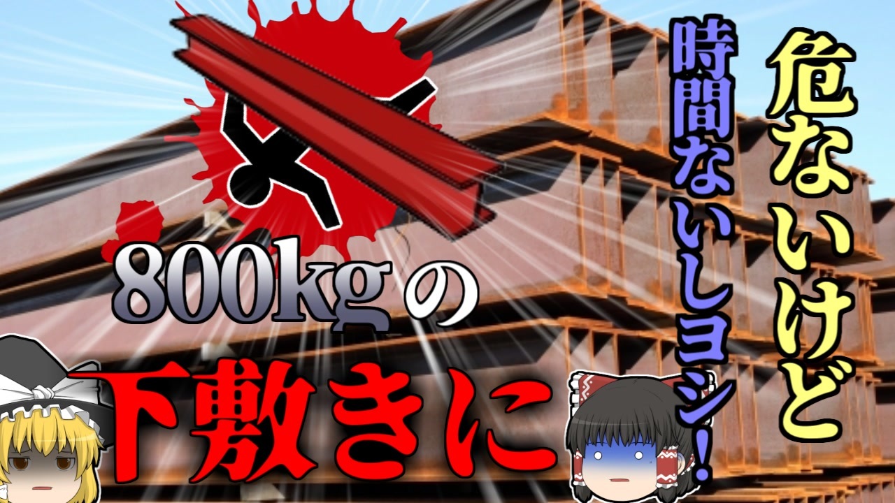<a href="#" class="seekTime" data-seekTime="00:00" onclick="seekNicoPlayer('#00:00'); return false;">#00:00</a> 冒頭挨拶<br><a href="#" class="seekTime" data-seekTime="00:54" onclick="seekNicoPlayer('#00:54'); return false;">#00:54</a> 視聴上の注意<br><a href="#" class="seekTime" data-seekTime="1:13" onclick="seekNicoPlayer('#1:13'); return false;">#1:13</a> 本編開始<br><a href="#" class="seekTime" data-seekTime="1:55" onclick="seekNicoPlayer('#1:55'); return false;">#1:55</a> 製造依頼<br><a href="#" class="seekTime" data-seekTime="2:03" onclick="seekNicoPlayer('#2:03'); return false;">#2:03</a> 作業をしていた2人<br><a href="#" class="seekTime" data-seekTime="2:51" onclick="seekNicoPlayer('#2:51'); return false;">#2:51</a> 8mのH鋼<br><a href="#" class="seekTime" data-seekTime="4:11" onclick="seekNicoPlayer('#4:11'); return false;">#4:11</a> 突然吊り荷が滑り落ち・・・<br><a href="#" class="seekTime" data-seekTime="5:23" onclick="seekNicoPlayer('#5:23'); return false;">#5:23</a> 原因と要因・背景<br><a href="#" class="seekTime" data-seekTime="7:27" onclick="seekNicoPlayer('#7:27'); return false;">#7:27</a> 必要だった対策<br><br>今回紹介するのは、日本の北関東地方で発生した、とある建設資材工場での事例です。<br>この工場ではこの日、ホテルの建設現場で使用する鉄骨「H鋼」が不足し、急遽下請け業者の工場に製造依頼が行き、社長である「Aさん」従業員男性「Bさん」によって、大急ぎの製造、納品が行われようとしていました。<br>二人はまず、3mのH鋼を溶接、塗装し、続けて全長8m重量800kgの大きなH鋼を加工し、工場内の天井クレーンにて、次の工程である塗装場へと移動を行っていました。<br>しかしその最中、突然吊り上げていたH鋼が滑り落ち、近くで見ていたBさんに直撃。Aさんがすぐに駆け寄り、救急に通報しましたが、Bさんは全身を強く打ち、この世を去ってしまいました。<br>何故、先ほどまでに安全に作業が行えていたにも拘らず、突然このような事故が起きてしまったのでしょうか?<br><br><br />※この動画は過去の事件を知り、現在でも同じことが発生する危険性を再認識、関与しないように促すための動画であり、視聴者を扇動、動揺を誘うためのコンテンツではありません。<br><br>ご要望にお応えして、メンバーシップの開設を行いました。<br>下記URLからも登録可能ですので、ご興味がある方は是非ご参加ください。<br><a href="https://www.youtube.com/channel/UCcT5a1J7XJW7CLYI2RKl4pw/join" target="_blank" rel="noopener nofollow">https://www.youtube.com/channel/UCcT5a1J7XJW7CLYI2RKl4pw/join</a><br><br><br>Twitter<br>→<a href="https://twitter.com/yukkurisurutoko" target="_blank" rel="noopener nofollow">https://twitter.com/yukkurisurutoko</a><br><br>取り急ぎ、簡易的にですがマイリストを作りました。<br>【ゆっくり解説】事故・事件関係紹介リスト <br><a href="https://www.nicovideo.jp/mylist/71034319" target="_blank" rel="noopener nofollow">https://www.nicovideo.jp/mylist/71034319</a><br>【ゆっくり解説】放射線系事故<br><a href="https://www.nicovideo.jp/mylist/71034368" target="_blank" rel="noopener nofollow">https://www.nicovideo.jp/mylist/71034368</a><br>【ゆっくり解説】鉄道系事故・事件関連<br><a href="https://www.nicovideo.jp/mylist/71034379" target="_blank" rel="noopener nofollow">https://www.nicovideo.jp/mylist/71034379</a>