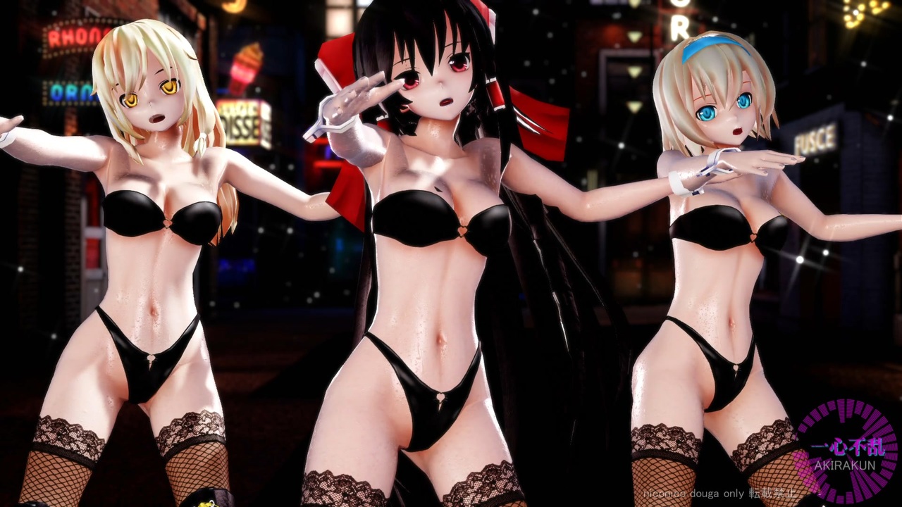 RQ衣装の3人に踊ってもらいました。<br>現在、作成リクエストは受け付けていません。<br><br><br>【楽曲】:「一心不乱」:梅とら様 <a href="https://www.nicovideo.jp/watch/sm17141425" class="watch">sm17141425</a><br><br>【トレス元】:Babo 様 <a href="https://www.nicovideo.jp/watch/sm30307601" class="watch">sm30307601</a><br><br>【モーション】:きまぐれ(Kimagure)様 <a href="https://www.nicovideo.jp/watch/sm30438957" class="watch">sm30438957</a><br><br>【リップ・表情・カメラ】:だんしゃくいも様 <a href="https://www.nicovideo.jp/watch/sm30464061" class="watch">sm30464061</a><br>※カメラは3人用に調整しています。<br><br><br>■ステージ<br>路地ステージ:伊達の犬様 <a href="https://seiga.nicovideo.jp/seiga/im10856771" target="_blank" rel="noopener">im10856771</a>、<a href="https://seiga.nicovideo.jp/seiga/im8364791" target="_blank" rel="noopener">im8364791</a><br><br>■モデル<br>霊夢、魔理沙、アリス:にがもん様、しえら様<br>・衣装:アールビット様<br><br>■エフェクト<br>Ray-mmd-1.5.2:Rui様<br>初心者マテリアル:さらしな様<br>肌マテリアル:MARUSU様<br>AutoLuminous4:そぼろ様<br>水面エフェクト:ビームマンP様<br>空中に漂う埃:化身バレッタ様<br>ikBokeh_v018c:ikeno様<br><br><br>MikuMikuDance:樋口優様<br>MMEffect :舞力介入P様<br>PMDE、PmxE:極北P様<br>AviUtl :KENくん様<br>Ut Video Codec suite:ゆーむP様<br>上海アリス幻楽団・東方project(ZUN様)<br><br>cz500c様x3、ねむ様、ゆうろえーす様x14、新・都市伝説P様x2、-はる-様x2、runmania様、アルマク 鮎様x3、うまおいおーい様、ゆきちお様x3、きくちよ様、ゆうろえーす様、ゲルド様x3、ゆうろえーす様、cz500c様、ゆうろえーす様、ゆうろえーす様、ゆうろえーす様、またまたの広告ありがとうございます。(_ _)<br>ゆうろえーす様、アルマク 鮎様、多大な広告@@・・・じぃっ・・・@@・・・・・じぃぃぃっ@@、ありがとうございます。(_ _)<br>You様、ギフトありがとうございます。(_ _)<br><br>mylist ③<a href="https://www.nicovideo.jp/mylist/75586824" target="_blank" rel="noopener">mylist/75586824</a> ② <a href="https://www.nicovideo.jp/mylist/72970530" target="_blank" rel="noopener">mylist/72970530</a> ① <a href="https://www.nicovideo.jp/mylist/63690967" target="_blank" rel="noopener">mylist/63690967</a> 旧 <a href="https://www.nicovideo.jp/mylist/61238351" target="_blank" rel="noopener">mylist/61238351</a><br><br> ※動画の転載は禁止です。<br>Attention,Unauthorized reproduction prohibited!!