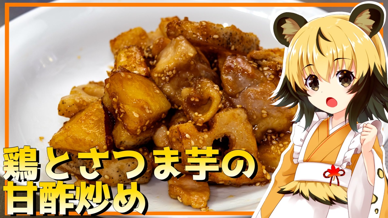 秋が旬で、甘さが美味しいさつま芋!<br>今回はそんなさつま芋を使った主菜メニュー「鶏とさつま芋の甘酢炒め」を作っていきましょう!<br><br>ちなみに過去動画の「豚肉とさつま芋の甘辛炒め(<a href="https://www.nicovideo.jp/watch/sm37809855" class="watch">sm37809855</a>)」のアレンジメニューです。<br>甘酢にすることで、濃い目のお味ですが、さっぱり食べることができ、<br>さらにご飯にとっても会うので、ぜひ新米に合わせてみてくださいね。<br><br><調理ポイント><br>1.さつま芋とれんこんは弱火でじっくり揚げるとホクホクに<br> 中火で揚げるとカラッした食感になるので、<br> お好みの食感に合わせて、揚げてみてください。<br>2.れんこんは切ったら水につけ、しっかり水を拭き取ってから<br> 揚げてくださいね(油が飛び跳ねてしまいます)<br>3.時短したい時は、さつま芋とれんこんはレンジ加熱し、<br> 水気を拭いて表面だけ揚げれば、OKです。<br><br>■材料(2〜3人分)<br>・鶏もも肉 1枚(250g)<br>・さつま芋 250g<br>・れんこん 200g<br>・片栗粉 <br>・いりごま お好みの量<br><br>たれ<br>・砂糖 大さじ2<br>・水 大さじ1<br>・醤油 大さじ2<br>・酢 大さじ1<br> ※米酢、穀物酢、米黒酢お好みのお酢を使ってください<br><br>■所要時間<br>作業時間:30分程度<br><br>youtube:<a href="https://youtu.be/CMNGVF9RtNg" target="_blank" rel="noopener nofollow">https://youtu.be/CMNGVF9RtNg</a><br>twitter:@lycaon_kitchen<br><br>りおんの和風喫茶:<a href="https://www.nicovideo.jp/series/77190" target="_blank" rel="noopener">series/77190</a><br>おつかれごはん:<a href="https://www.nicovideo.jp/series/155690" target="_blank" rel="noopener">series/155690</a><br>手作り和菓子でちょっとひとやすみしませんか?:<a href="https://www.nicovideo.jp/series/155691" target="_blank" rel="noopener">series/155691</a><br><br>立ち絵:星華 彩二魔 様<br>イラスト:AWD kitchen<br>音源:DOVA-SYNDROME<br>音声:AI.VOICE 紲星あかり+ exVOICE