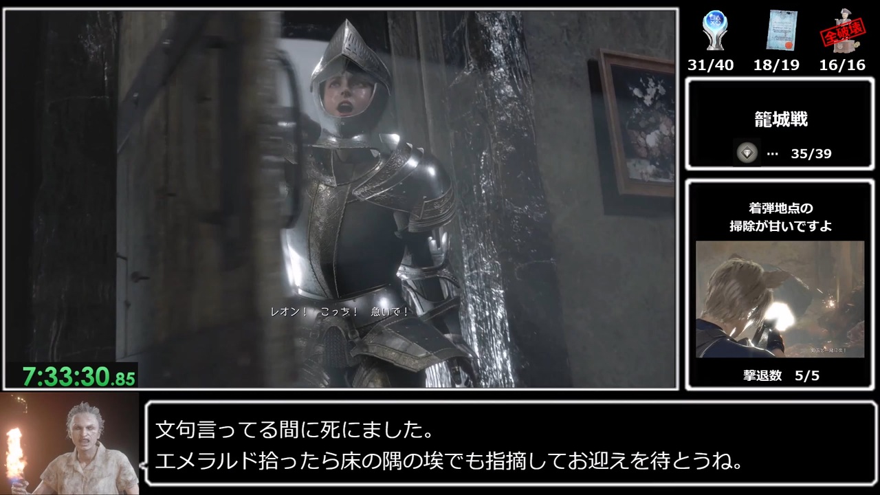 2倍速より早い(andだったりorだったり)倍速区間が長いとき酔い止めを出してます。<br>邪魔だったら教えてください。<br><br>3週目開始~3週目村終了まで<br><br>前→<a href="https://www.nicovideo.jp/watch/sm42862560" class="watch">sm42862560</a><br>次→<a href="https://www.nicovideo.jp/watch/sm42903929" class="watch">sm42903929</a><br><br>無編集版:<a href="https://youtu.be/6jxyTYf90BY" target="_blank" rel="noopener nofollow">https://youtu.be/6jxyTYf90BY</a><br>※録画時にOBSでタイマーをつけてるので、タイマーありますが無編集です<br><br>【使用機種】<br>・PS5<br><br>【計測区間】<br>・1周目難易度選択~右上にトロフィー「なけるぜ」取得ダイヤログが出た瞬間まで<br>※SEPARATE WAYS配信前のRTAです。SEPARATE WAYSのトロフィーを含みません。<br><br>【レギュ】<br>・壁抜け系バグ無し<br>・DLCなし(マーセナリーズ込み)<br>・チャーム無し<br>・コスチューム、アクセサリーは解放したら使ってOK<br><br>【諸注意】<br>・ゆっくりがしゃべります<br><s>・だんだんガバガバになります</s>これ以降ずっとガバガバです<br>・編集で改善してほしい点があったら教えてね<br><br>