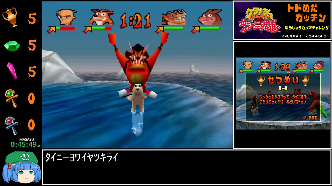 まだ余裕(負けないとは言ってない)<br>ワープルーム2まで<br><br>前→<a href="https://www.nicovideo.jp/watch/sm42854258" class="watch">sm42854258</a><br>次→<a href="https://www.nicovideo.jp/watch/sm42921677" class="watch">sm42921677</a><br>投稿動画→<a href="https://www.nicovideo.jp/mylist/44129502" target="_blank" rel="noopener">mylist/44129502</a><br><br>無編集→<a href="https://youtu.be/T7BGGqpJA-0?si=58Ab-_PdQYJmJh0A" target="_blank" rel="noopener nofollow">https://youtu.be/T7BGGqpJA-0?si=58Ab-_PdQYJmJh0A</a><br><br>マルチバース→<a href="https://www.nicovideo.jp/watch/sm39988167" class="watch">sm39988167</a><br><br>使用機種「PS2」<br>レギュレーション<br>・操作可能になってから~5つのアイテムを28個集めるまで<br>・バグ技禁止<br><br>X→<a href="https://twitter.com/masayu_345" target="_blank" rel="noopener nofollow">https://twitter.com/masayu_345</a><br><br><a target="_blank" href="https://qa.nicovideo.jp/faq/show/19424?site_domain=default" style="font-size: 13px;color: #657586; text-decoration: underline; line-height: 1.4">この動画は投稿者によって修正されました</a>