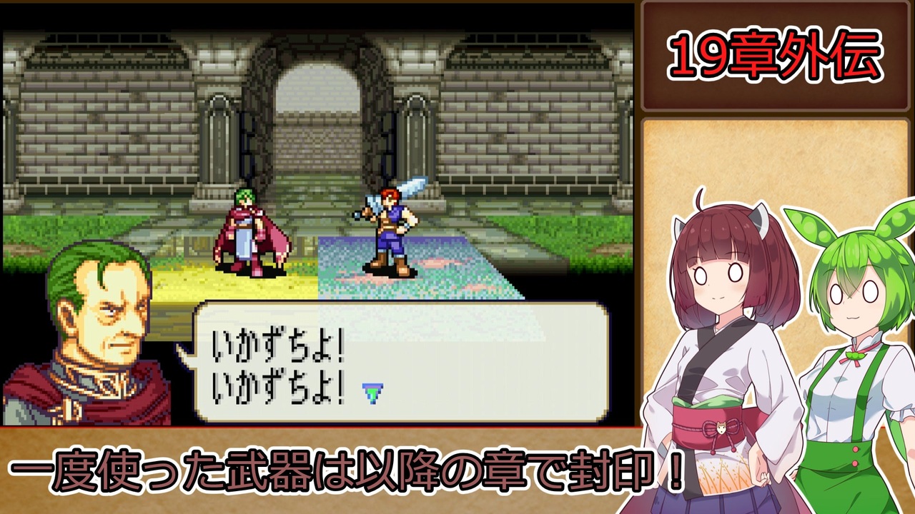 <span style="color: #85200c; font-size: 24px;"><strong><i>必殺率よ!必殺率よ!<br>我が叫びを聞け!<br>必殺率よ!!(切実)</i></strong></span><br><br><strong>ルール1:一度使用した武器種は、以降の章で使用する事を禁止する。<br>ルール2:武器の使用の定義は『その武器を装備した状態で敵との戦闘が発生したタイミング』『その武器を売却して換金した場合』杖の場合は『対象に対して使用した時点(命中の可否は問わない)』とする。</strong><br><span style="color: #ff0000;"><strong>※同盟軍、演出による戦闘イベントでは使用した判定にはならないこととする。</strong></span><br><strong>ルール3:難易度はリン編ハード→ヘクトル編ハードとする。<br>ルール4:序章から終章まで外伝、異伝を含む全ての章を攻略し、仲間に出来るユニットは全員加入させ、生存させる。(序章と1章のみ同一の章として扱う)</strong><br><span style="color: #ff0000; font-size: 18px;"><strong>※バグ技禁止</strong></span><br><br>本動画のシリーズリスト【<a href="https://www.nicovideo.jp/series/406473" target="_blank" rel="noopener">series/406473</a>】<br>前作の同縛りプレイ【<a href="https://www.nicovideo.jp/series/316824" target="_blank" rel="noopener">series/316824</a>】<br>前:【<a href="https://www.nicovideo.jp/watch/sm42854015" class="watch">sm42854015</a>】次:【<a href="https://www.nicovideo.jp/watch/sm42913675" class="watch">sm42913675</a>】<br><br><strong>使用したソフト</strong><br>VOICEROID+東北きりたんEX<br>VOICEPEAK 東北きりたん<br>VOICEPEAK ずんだもん<br><strong>お借りした素材</strong><br>ニコニコモンズの皆様(コンテンツツリー参照)