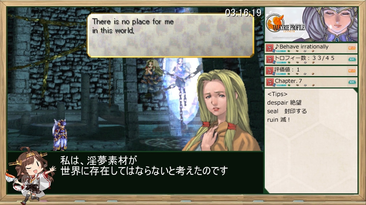 チャートを冒涜した罪は重い<br>ガバは聖のもとに滅せよ<br><br>【GAME】 <br>VALKYRIE PROFILE(ヴァルキリープロファイル)<br>PS4(海外版)<br><br>【レギュレーション】<br>・計測区間:難易度選択~プラチナトロフィー取得表示<br>・難易度:HARD<br><br>【<a href="https://www.nicovideo.jp/mylist/75357731" target="_blank" rel="noopener">mylist/75357731</a>】 <br>PREV≫<a href="https://www.nicovideo.jp/watch/sm42831074" class="watch">sm42831074</a><br>NEXT≫<a href="https://www.nicovideo.jp/watch/sm42960193" class="watch">sm42960193</a><br><br>Part.1≫<a href="https://www.nicovideo.jp/watch/sm42393062" class="watch">sm42393062</a><br><br>≪前作RTA≫LIGHTNING RETURNS FINAL FANTASYⅩⅢ_2:41:26_Part.0<br>≫<a href="https://www.nicovideo.jp/watch/sm39205369" class="watch">sm39205369</a><br><br>≪ウマ娘RTAもやってます≫トレーナーID:530 912 477<br>≫<a href="https://www.nicovideo.jp/watch/sm38417256" class="watch">sm38417256</a><br><br>Other Cielo’s Title <br>【<a href="https://www.nicovideo.jp/mylist/50418741" target="_blank" rel="noopener">mylist/50418741</a> 】<br><br>twitter <a href="https://twitter.com/Cielo_Polo" target="_blank" rel="noopener nofollow">https://twitter.com/Cielo_Polo</a><br>