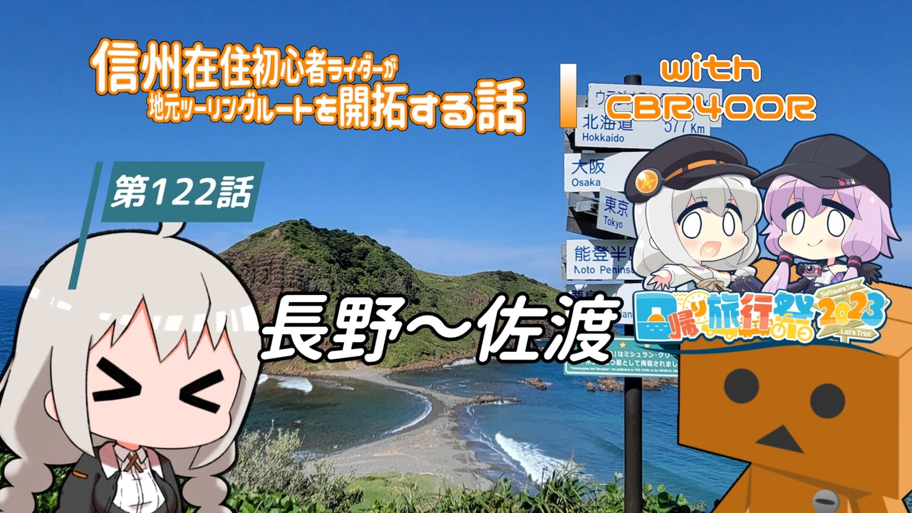ついに信州が離島を手に入れました!(錯乱<br><br> フミさん主催「日帰り旅行祭2023」<a href="https://www.nicovideo.jp/watch/sm42549027" class="watch">sm42549027</a>に参加です。<br>素敵な企画に圧倒的感謝!<br><br>■主に訪れた場所(佐渡)<br> 二ツ亀 <a href="https://maps.app.goo.gl/XHT4DwF7K4Ec7oTq5" target="_blank" rel="noopener nofollow">https://maps.app.goo.gl/XHT4DwF7K4Ec7oTq5</a><br> 大野亀 <a href="https://maps.app.goo.gl/TBfGU9g2rq2dxBd88" target="_blank" rel="noopener nofollow">https://maps.app.goo.gl/TBfGU9g2rq2dxBd88</a><br> 大間港跡 <a href="https://maps.app.goo.gl/EZPSWftWEeYhJuWj9" target="_blank" rel="noopener nofollow">https://maps.app.goo.gl/EZPSWftWEeYhJuWj9</a><br> 北沢浮遊選鉱場跡 <a href="https://maps.app.goo.gl/JbjTdoig6reWJhzU6" target="_blank" rel="noopener nofollow">https://maps.app.goo.gl/JbjTdoig6reWJhzU6</a><br> 宿根木集落 <a href="https://maps.app.goo.gl/gqxyZKogucU5Yiu16" target="_blank" rel="noopener nofollow">https://maps.app.goo.gl/gqxyZKogucU5Yiu16</a> <br><br> ふぁーれん <a href="https://twitter.com/fahren_fuwarin" target="_blank" rel="noopener nofollow">https://twitter.com/fahren_fuwarin</a><br><br> これまでの軌跡(マイマップ) <a href="https://www.google.com/maps/d/edit?mid=19pGGBMRUavXn_s0VEMjKAgSUhufdxcwF&usp=sharing" target="_blank" rel="noopener nofollow">https://www.google.com/maps/d/edit?mid=19pGGBMRUavXn_s0VEMjKAgSUhufdxcwF&usp=sharing</a><br><br><br>■第1話 <a href="https://www.nicovideo.jp/watch/sm37440916" class="watch">sm37440916</a><br>■第121話 <a href="https://www.nicovideo.jp/watch/sm42860162" class="watch">sm42860162</a> ← ここ → ■第123話 <a href="https://www.nicovideo.jp/watch/sm42922605" class="watch">sm42922605</a>