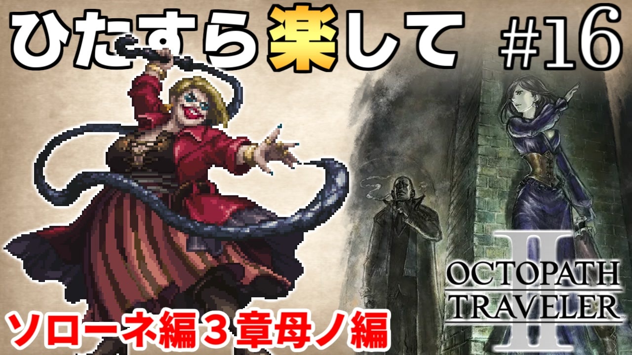 ソローネ編3章母ノ編<br><br>プレイ条件<br>1.最少勝利回数でラスボス&裏ボス撃破<br>2.必須戦闘以外で稼がない(捕獲・集金・盗む)<br>3.道中のアイテムは拾わない(宝箱・隠されたアイテム)<br>4.道中では確率に頼らない(確率系のFC・確率系の一緒に商売禁止)<br>5.傭兵よび・スケジュール交渉・加勢・摩訶不思議の舞・幸運の矢禁止<br>6.編集は頑張らない<br>※申し訳ないがバグ利用は全面的にNG<br><br><a href="https://www.nicovideo.jp/watch/sm42866814" class="watch">sm42866814</a>←前|次→<a href="https://www.nicovideo.jp/watch/sm42930696" class="watch">sm42930696</a><br>part1→<a href="https://www.nicovideo.jp/watch/sm42436125" class="watch">sm42436125</a><br>再生リスト→<a href="https://www.nicovideo.jp/mylist/75397576" target="_blank" rel="noopener">mylist/75397576</a><br><br>ライブアライブもやってます→<a href="https://www.nicovideo.jp/watch/sm42267427" class="watch">sm42267427</a><br>ひたすら楽してオクトラ1はこちら→<a href="https://www.nicovideo.jp/watch/sm37813793" class="watch">sm37813793</a><br><br>他の挑戦シリーズとか→<a href="https://www.nicovideo.jp/mylist/3220744" target="_blank" rel="noopener">mylist/3220744</a> <br>YouTube版→<a href="https://goo.gl/oey5Y7" target="_blank" rel="noopener nofollow">https://goo.gl/oey5Y7</a><br>ニコニコニュースのインタビュー記事→<a href="https://originalnews.nico/284602" target="_blank" rel="noopener nofollow">https://originalnews.nico/284602</a><br><br>© 2023 SQUARE ENIX CO., LTD. All Rights Reserved.