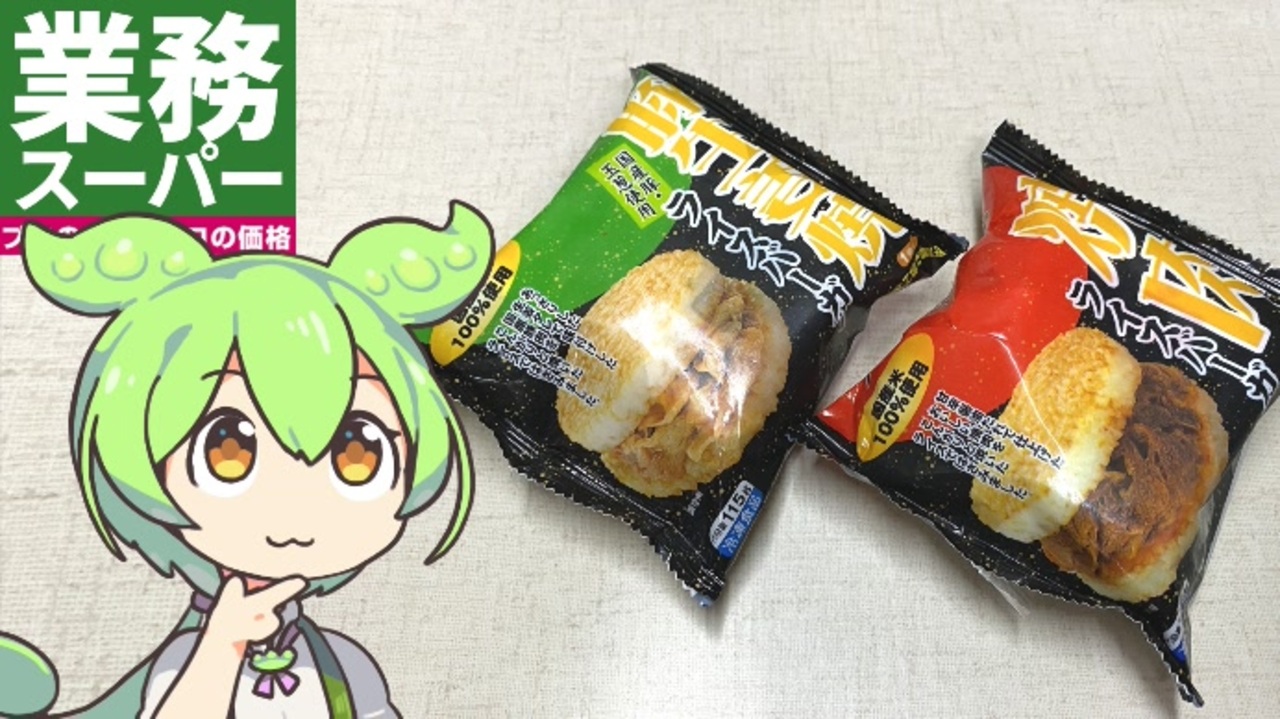 生姜焼き、焼肉が入った業務スーパーのライスバーガーです。<br><br><br>【参考】<br>業務スーパーホームページ<br><a href="https://www.gyomusuper.jp/index.php" target="_blank" rel="noopener nofollow">https://www.gyomusuper.jp/index.php</a><br>愛興食品株式会社ホームページ<br><a href="http://aikofoods.co.jp/" target="_blank" rel="noopener nofollow">http://aikofoods.co.jp/</a><br>味の素の葱油かおる香ばし炒飯<br><a href="https://www.ffa.ajinomoto.com/products/detail/id/322" target="_blank" rel="noopener nofollow">https://www.ffa.ajinomoto.com/products/detail/id/322</a><br>川商フーズ株式会社ビジネスブランド<br><a href="https://www.kawasho-foods.co.jp/work/brand/" target="_blank" rel="noopener nofollow">https://www.kawasho-foods.co.jp/work/brand/</a><br><br><br>【使用した素材】(※敬称略)<br>(合成音声)VOICEVOX/ずんだもん/四国めたん/春日部つむぎ<br><a href="https://voicevox.hiroshiba.jp/" target="_blank" rel="noopener nofollow">https://voicevox.hiroshiba.jp/</a><br>(立ち絵)坂本アヒル<br><a href="https://seiga.nicovideo.jp/seiga/im10788496" target="_blank" rel="noopener">im10788496</a>/<a href="https://seiga.nicovideo.jp/seiga/im10791276" target="_blank" rel="noopener">im10791276</a><br>(楽曲)甘茶の音楽工房/「楽しい麦畑」「フルーツパフェ」「お城の舞踏会」<br><a href="https://amachamusic.chagasi.com/" target="_blank" rel="noopener nofollow">https://amachamusic.chagasi.com/</a>