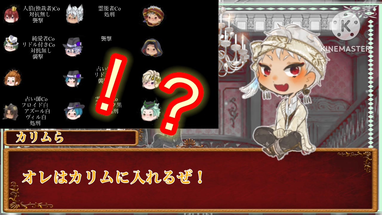 前→(<a href="https://www.nicovideo.jp/watch/sm42867134" class="watch">sm42867134</a>) 次→(<a href="https://www.nicovideo.jp/watch/sm42941848" class="watch">sm42941848</a>)<br><br>リドル「ボクはトレイの紅茶が恋しくなった」<br>フロイド「一方その頃、ウミガメくんはクロワッサンパーティーをしていた」<br>リドル「参加者全員首をお跳ね」<br><br>お疲れ様です、後編ですお待たせしました!待ってくれてる人がいると信じて!お待たせしました!!!(クソデカボイス)<br>比較的早めに投稿できたので個人としては御の字。不備?心の目で見てくれ。<br>前編を見た人は分かると思いますが、カリムらは誤字ではありません。あと前編のコメントでフロイド可愛いってコメントありましたけど、うp主もフロイド可愛いと思います。握手。てか入江組の距離感割と好き。<br>関係ないけどプラチナジャックとプラチナグリムを引きました。可愛い。ハロウィンも楽しみですね!レオナSR引きます(素振り)<br><br>3K主催の実卓ツイなりチャット人狼の文字起こしです。 会話の流れを整える、重複セリフのカットなど一部調整を含みます。<br>※初心者経験者入り乱れています、PS差、プレイに対する指摘はお控えください<br>※過度な夢コメ・腐コメ、誹謗中傷、他の視聴者様の不快になるようなコメントはご遠慮願います。<br><br>お借りした立ち絵:白桃ぜりぃ 様<br><a href="https://www.pixiv.net/users/30774295" target="_blank" rel="noopener nofollow">https://www.pixiv.net/users/30774295</a><br><br>はち様<br>(Twitter)@Bee_080<br><br>参加メンバー(敬称略)<br>レオナ:2K(3K)<br>リドル:あまと<br>トレイ:三つ葉 <a href="https://www.nicovideo.jp/user/41606351" target="_blank" rel="noopener">user/41606351</a><br>ケイト:レキ<br>ジャック:樋口<br>カリム:らる<br>アズール:az <a href="https://www.nicovideo.jp/user/30679748" target="_blank" rel="noopener">user/30679748</a> <br>ジェイド:ゆうなぎ<br>フロイド:Hisui <a href="https://www.nicovideo.jp/user/130892023" target="_blank" rel="noopener">user/130892023</a><br>可愛い〇〇シリーズ→ (<a href="https://www.nicovideo.jp/watch/sm42902621" class="watch">sm42902621</a>)<br>ジャミル:ナツ<br>ヴィル:29<br>セベク:マリモ<br>