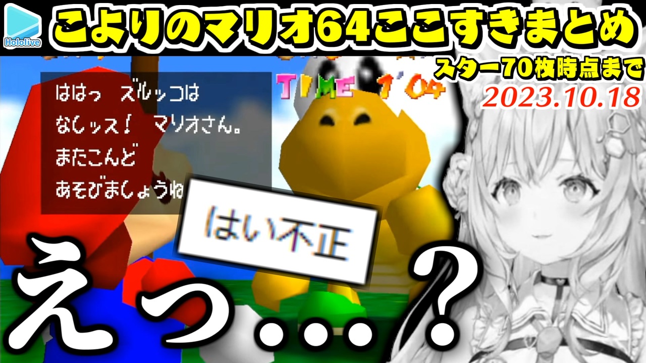 元気いっぱいの悲鳴で元気出る<br>120枚チャレンジやるかどうかはわかんないそうです<br><br>元動画様はこちら<br>【マリオ64】ひさびさ復活!!へたっぴマリオ遂に64へ!完全初見ではじめるよーーー!!!【博衣こより/ホロライブ】<br><a href="https://youtu.be/fP-yj0lxXfQ" target="_blank" rel="noopener nofollow">https://youtu.be/fP-yj0lxXfQ</a><br><br>【マリオ64】完全初見へたっぴマリオ64!絶叫しながらクッパのもとへ行け!!!【博衣こより/ホロライブ】<br><a href="https://youtu.be/5NvP58pepJU" target="_blank" rel="noopener nofollow">https://youtu.be/5NvP58pepJU</a><br><br>【マリオ64】完全初見絶叫へたっぴマリオ64!クリアまで!!!【博衣こより/ホロライブ】<br><a href="https://youtu.be/ehy589hj5ag" target="_blank" rel="noopener nofollow">https://youtu.be/ehy589hj5ag</a><br><br>【マリオ64】おかゆ先生!スターが集められませんぺこ…!【ホロライブ/兎田ぺこら・猫又おかゆ】<br><a href="https://youtu.be/34TRUvNrkas" target="_blank" rel="noopener nofollow">https://youtu.be/34TRUvNrkas</a><br><br>Koyori ch. 博衣こより - holoX - <a href="https://t.co/U4G9NUjWs5" target="_blank" rel="noopener nofollow">https://t.co/U4G9NUjWs5</a><br /><span style="color: #b7b7b7; font-size: 10px;">ホロライブ切り抜き/なめたけ <a href="https://t.co/CBwJLnYR2c" target="_blank" rel="noopener nofollow">https://t.co/CBwJLnYR2c</a></span>
