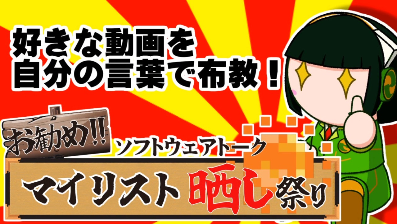 「みんなのオススメ」もいいけどよ……<br>おれは「キミのオススメ」が見たいんだぜ!<br><br><strong>■開催期間</strong><br>12月7日~14日<br>終了後にまとめ動画、スプレッドシートを公開予定<br>ロゴは静画に公開中(<a href="https://seiga.nicovideo.jp/seiga/im11293076" target="_blank" rel="noopener">im11293076</a>)<br><br><strong>■参加者がやること</strong><br>1:<span style="color: #0000ff;">非公開状態</span>でマイリストを作り、タイトル末尾に<strong>【お勧め晒し祭】</strong>を付ける<br>2:めっちゃ好きな動画を登録し、良いところを書きまくる<br>3:開催期間が始まったらマイリストを<span style="color: #ff0000;">公開設定</span>にする<br>4:Twitter/Xにハッシュタグ<strong>「#お勧め晒し祭」</strong>をつけてマイリスのリンクを投稿する<br>5:みんなが公開したマイリスを見て楽しむ<br>→気に入ったマイリストには「マイリストをフォローする」機能を使おう!<br><br><strong>■戦後処理</strong><br>期間終了後、参加マイリストをそのまま更新して<br>オススメを増やしていっても構いません<br>ただし、追加は期間が終わった後にしてください<br><br><strong>■紹介文サンプルマイリスト</strong><br>伸びてほしいソフトウェアトーク実況:<a href="https://www.nicovideo.jp/mylist/72958477" target="_blank" rel="noopener">mylist/72958477</a><br>実況以外のソフトウェアトーク系オススメまとめ:<a href="https://www.nicovideo.jp/mylist/73734872" target="_blank" rel="noopener">mylist/73734872</a><br><br><span style="color: #ff0000;"><strong>■追加QA</strong></span><br>・どうやって探すんや:ハッシュタグでTwitter検索!<br>・トークロイドは?:OK!<br>・最近の動画のがいい?:特に縛りはありません<br>・ジャンルごとに複数公開でもいい?:例外なく1つに纏めてください<br>・Googleフォームで応募させて:検索を容易にするためにTwitter必須です<br>・説明文書けへん…:がんばってくれ!!!!!<br><br><span style="font-size: 10px;"><strong>■権利表記</strong></span><br><span style="font-size: 10px;">・ロゴ素材 Undots「太陽」<br><a href="https://freepixelarts-undots.com/" target="_blank" rel="noopener nofollow">https://freepixelarts-undots.com/</a><br>・曲「Olive」「Straw」<br>作曲 RYU ITO<br><a href="https://ryu110.com/" target="_blank" rel="noopener nofollow">https://ryu110.com/</a></span>