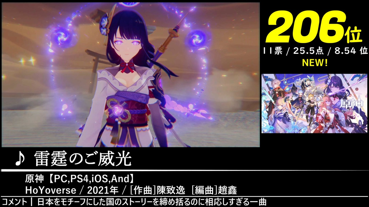 227位~204位の24曲を収録しています。<br>2022年5月1日~8月1日にかけて開催された「第15回みんなで決めるゲーム音楽ベスト100」の結果を動画化したものです。<span style="font-size: 10px;">集計人≠動画制作者</span><br><br>またまたまたま(ry素敵な応援イラストをいただきました!本当にありがとうございます!!!<br><br><br>↓全体の結果はこちら↓<br><a href="https://w.atwiki.jp/gamemusicbest100/pages/9902.html" target="_blank" rel="noopener nofollow">https://w.atwiki.jp/gamemusicbest100/pages/9902.html</a><br><br><br>※収録時間が5分以上の楽曲です。<br><a href="#" class="seekTime" data-seekTime="18:26" onclick="seekNicoPlayer('#18:26'); return false;">#18:26</a>~、<a href="#" class="seekTime" data-seekTime="29:12" onclick="seekNicoPlayer('#29:12'); return false;">#29:12</a>~、<a href="#" class="seekTime" data-seekTime="52:15" onclick="seekNicoPlayer('#52:15'); return false;">#52:15</a>~、<a href="#" class="seekTime" data-seekTime="65:51" onclick="seekNicoPlayer('#65:51'); return false;">#65:51</a>~<br><br><br>Part.31→<a href="https://www.nicovideo.jp/watch/sm42881353" class="watch">sm42881353</a><br>Part.33→<a href="https://www.nicovideo.jp/watch/sm42944397" class="watch">sm42944397</a><br>第15回まとめ→<a href="https://www.nicovideo.jp/mylist/74713060" target="_blank" rel="noopener">mylist/74713060</a><br><br><br>【ショートカット】<br>227位<a href="#" class="seekTime" data-seekTime="0:40" onclick="seekNicoPlayer('#0:40'); return false;">#0:40</a> / 226位<a href="#" class="seekTime" data-seekTime="3:38" onclick="seekNicoPlayer('#3:38'); return false;">#3:38</a> / 225位<a href="#" class="seekTime" data-seekTime="7:45" onclick="seekNicoPlayer('#7:45'); return false;">#7:45</a> / 224位<a href="#" class="seekTime" data-seekTime="10:00" onclick="seekNicoPlayer('#10:00'); return false;">#10:00</a> / 223位<a href="#" class="seekTime" data-seekTime="15:00" onclick="seekNicoPlayer('#15:00'); return false;">#15:00</a> / 222位<a href="#" class="seekTime" data-seekTime="18:26" onclick="seekNicoPlayer('#18:26'); return false;">#18:26</a> / 221位<a href="#" class="seekTime" data-seekTime="24:36" onclick="seekNicoPlayer('#24:36'); return false;">#24:36</a> / 220位<a href="#" class="seekTime" data-seekTime="27:06" onclick="seekNicoPlayer('#27:06'); return false;">#27:06</a> / 219位<a href="#" class="seekTime" data-seekTime="29:12" onclick="seekNicoPlayer('#29:12'); return false;">#29:12</a> / 218位<a href="#" class="seekTime" data-seekTime="34:50" onclick="seekNicoPlayer('#34:50'); return false;">#34:50</a> / 217位<a href="#" class="seekTime" data-seekTime="38:45" onclick="seekNicoPlayer('#38:45'); return false;">#38:45</a> / 216位<a href="#" class="seekTime" data-seekTime="41:23" onclick="seekNicoPlayer('#41:23'); return false;">#41:23</a> / 214位①<a href="#" class="seekTime" data-seekTime="44:29" onclick="seekNicoPlayer('#44:29'); return false;">#44:29</a> / 214位②<a href="#" class="seekTime" data-seekTime="47:29" onclick="seekNicoPlayer('#47:29'); return false;">#47:29</a> / 213位<a href="#" class="seekTime" data-seekTime="52:15" onclick="seekNicoPlayer('#52:15'); return false;">#52:15</a> / 212位<a href="#" class="seekTime" data-seekTime="57:26" onclick="seekNicoPlayer('#57:26'); return false;">#57:26</a> / 211位<a href="#" class="seekTime" data-seekTime="60:05" onclick="seekNicoPlayer('#60:05'); return false;">#60:05</a> / 210位<a href="#" class="seekTime" data-seekTime="62:39" onclick="seekNicoPlayer('#62:39'); return false;">#62:39</a> / 209位<a href="#" class="seekTime" data-seekTime="65:51" onclick="seekNicoPlayer('#65:51'); return false;">#65:51</a> / 208位<a href="#" class="seekTime" data-seekTime="71:35" onclick="seekNicoPlayer('#71:35'); return false;">#71:35</a> / 207位<a href="#" class="seekTime" data-seekTime="73:44" onclick="seekNicoPlayer('#73:44'); return false;">#73:44</a> / 206位<a href="#" class="seekTime" data-seekTime="77:23" onclick="seekNicoPlayer('#77:23'); return false;">#77:23</a> / 205位<a href="#" class="seekTime" data-seekTime="80:56" onclick="seekNicoPlayer('#80:56'); return false;">#80:56</a> / 204位<a href="#" class="seekTime" data-seekTime="85:28" onclick="seekNicoPlayer('#85:28'); return false;">#85:28</a><br><br><a target="_blank" href="https://qa.nicovideo.jp/faq/show/19424?site_domain=default" style="font-size: 13px;color: #657586; text-decoration: underline; line-height: 1.4">この動画は投稿者によって修正されました</a>