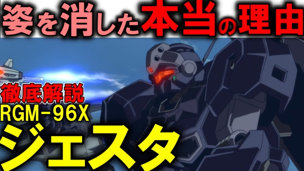 【姿を消した本当の理由とは】RGM-96Xジェスタ解説【機動戦士ガンダムUC】<br><br>ガンダムUCのMS、RGM-96Xジェスタの性能を解説しながら、これ実は消えてないのでは?じゃあなんでどこにもいないの?的などを解説、考察していきます。<br><br>今回は解説と考察が同じくらいです。<br><br>そもそもF91の時点で既にジャベリンが採用されてますし、ジェスタ的な超エースたちがいないところを狙って襲う作品ばかりなのかなと思ったりしています。<br>カメラに映ってないだけ的な。<br><br>現在連載中の小説はこちら:<br>異世界アイドル革命!死に戻り悪役令嬢は閃いた『こいつら全員アイドルにしてしまおう!』<br><a href="https://kakuyomu.jp/works/16817330662598051943" target="_blank" rel="noopener nofollow">https://kakuyomu.jp/works/16817330662598051943</a><br><br>質問、などありましたらこちらにも<br><a href="https://twitter.com/@i4S0LHspdgzBTor" target="_blank" rel="noopener nofollow">https://twitter.com/@i4S0LHspdgzBTor</a><br><br>清見元康名義でカクヨム、小説家になろう、たいあっぷなどに投稿しています。<br>もし良ければ応援お願いしますm(_ _)m<br><a href="https://kakuyomu.jp/users/GariD/works" target="_blank" rel="noopener nofollow">https://kakuyomu.jp/users/GariD/works</a><br><br>以前の作品(短編シリアス):<br>転生した厄災の大魔女はやがて聖女と呼ばれる<br><a href="https://ncode.syosetu.com/n0827ha/" target="_blank" rel="noopener nofollow">https://ncode.syosetu.com/n0827ha/</a><br><br>A.I.VOICE:結月ゆかり<br>VOICEVOX:ずんだもん<br><br>使用させていただいたずんだもん:<br>ずんだもん mini Deluxe(立ち絵) ver1.2<br><a href="https://seiga.nicovideo.jp/seiga/im10794509" target="_blank" rel="noopener nofollow">https://seiga.nicovideo.jp/seiga/im10794509</a><br><br>いつも広告、コメントありがとうございます。<br>励みになりますm(_ _)m<br>
