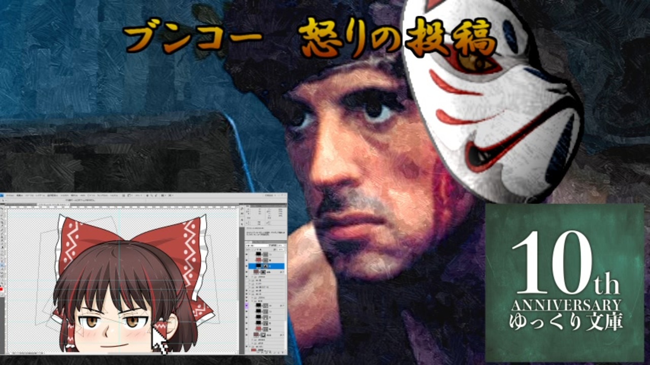 ゆっくり文庫様の10周年を記念して、お祝いと応援の動画を作りました。<br>いやー、他のみなさんが凝った作りの中、嘘字幕なんて恥ずかしい。<br>けどどんな内容であろうと、文庫様は喜んでくれるに違いない。<br>間違いない。<br><br>あ、そうそう「ブンコー」は架空の人物です。<br>けど彼の慟哭はゆっくり文庫様の心情を表していると思います。<br>たぶん75%くらいの確率で。<br><br>ベストエピソード総選挙結果発表!生放送!<br>生放送は10/22(日) 19:50開始<br><a href="https://live.nicovideo.jp/watch/lv343132079" target="_blank" rel="noopener">lv343132079</a><br><br>【ゆっくり文庫10th】ベストエピソード総選挙 結果発表<br>【前編】(121位~51位)<br><a href="https://www.nicovideo.jp/watch/sm42918371" class="watch">sm42918371</a><br>【後編】(50位~1位)<br><a href="https://www.nicovideo.jp/watch/sm42927154" class="watch">sm42927154</a><br><br>ゆっくり文庫10周年 ニコニコ大百科<br><a href="https://dic.nicovideo.jp/a/%E3%82%86%E3%81%A3%E3%81%8F%E3%82%8A%E6%96%87%E5%BA%AB10th" target="_blank" rel="noopener nofollow">https://dic.nicovideo.jp/a/%E3%82%86%E3%81%A3%E3%81%8F%E3%82%8A%E6%96%87%E5%BA%AB10th</a><br><br>ゆっくり文庫10周年 運営アカウント<br><a href="https://twitter.com/Bunko_10th" target="_blank" rel="noopener nofollow">https://twitter.com/Bunko_10th</a><br><br />うp主のクリ奨扱いの番組(ギフト)<br>●動画投稿講座(海兵隊式)<br><a href="https://www.nicovideo.jp/watch/sm41183459" class="watch">sm41183459</a><br><br>●ほしいものリスト(同じものでも全然嬉しい)<br><a href="https://www.amazon.co.jp/hz/wishlist/ls/20X2QKDPSW451?ref_=wl_share" target="_blank" rel="noopener nofollow">https://www.amazon.co.jp/hz/wishlist/ls/20X2QKDPSW451?ref_=wl_share</a><br>●匿名で送る方法<br><a href="https://appllio.com/amazon-wish-list" target="_blank" rel="noopener nofollow">https://appllio.com/amazon-wish-list</a><br><br>うp主の動画<br>ゆっくりのワイドショー⇒<a href="https://www.nicovideo.jp/mylist/45200880" target="_blank" rel="noopener">mylist/45200880</a><br>ゆっくりコンパクト劇場⇒<a href="https://www.nicovideo.jp/mylist/67330756" target="_blank" rel="noopener">mylist/67330756</a><br>ゆっくりロードショー⇒<a href="https://www.nicovideo.jp/mylist/51596849" target="_blank" rel="noopener">mylist/51596849</a><br>おもちゃ箱⇒<a href="https://www.nicovideo.jp/series/265908" target="_blank" rel="noopener">series/265908</a><br>ようつべセブンのチャンネル<br><a href="http://www.youtube.com/c/sevenyoutube" target="_blank" rel="noopener nofollow">http://www.youtube.com/c/sevenyoutube</a><br><br>ニコニコ大百科 ゆっくりのワイドショー<br><a href="https://dic.nicovideo.jp/id/5337230" target="_blank" rel="noopener nofollow">https://dic.nicovideo.jp/id/5337230</a><br><br>ニコニコ大百科 ゆっくり文庫リスペクト<br><a href="https://dic.nicovideo.jp/id/5701480" target="_blank" rel="noopener nofollow">https://dic.nicovideo.jp/id/5701480</a>