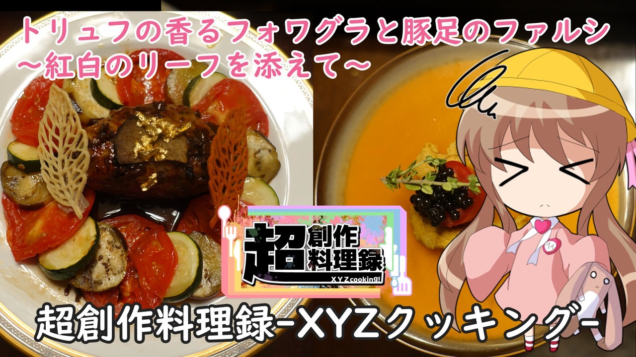 りょの字様主催の企画【超創作料理録-XYZクッキング-】参加動画です。<br>綺麗な盛り付けとか大の苦手ですが、結婚式に出せるような料理を目指して頑張りました。<br>……そして、いろいろ叩いたり裏漉ししたりしたら腱鞘炎が悪化しました。<br><br>告知動画:<a href="https://www.nicovideo.jp/watch/sm42715365" class="watch">sm42715365</a><br>参加者紹介:<a href="https://www.nicovideo.jp/watch/sm42790915" class="watch">sm42790915</a><br>文章発表:<a href="https://www.nicovideo.jp/watch/sm42826788" class="watch">sm42826788</a><br>りょの字:<a href="https://www.nicovideo.jp/watch/sm42915235" class="watch">sm42915235</a><br>青海:<a href="https://www.nicovideo.jp/watch/sm42914373" class="watch">sm42914373</a><br>イサラ:<a href="https://www.nicovideo.jp/watch/sm42917831" class="watch">sm42917831</a><br>赤島:<a href="https://www.nicovideo.jp/watch/sm42924125" class="watch">sm42924125</a><br>たらちゃん:<a href="https://www.nicovideo.jp/watch/sm42923039" class="watch">sm42923039</a><br><br /><br>使い方がよくわかってないTwitter<br><a href="https://twitter.com/hebikun99" target="_blank" rel="noopener nofollow">https://twitter.com/hebikun99</a>