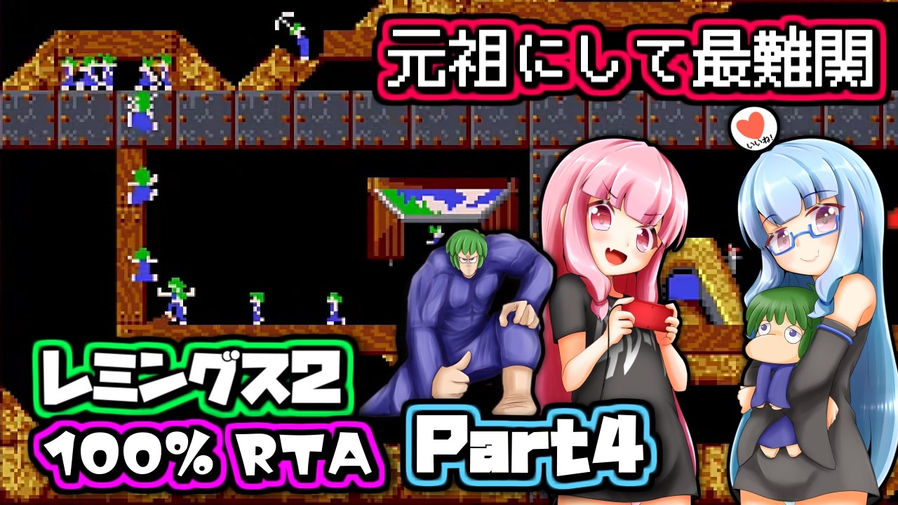 Lemmings 2: The Tribes のRTAパート4です!!<br>パート1を視聴してない方は初回の動画から御覧ください。<br><span style="color: #00ff00; font-size: 16px;"><strong><u>全救出縛り実況はこちら→<a href="https://www.nicovideo.jp/watch/sm39565084" class="watch">sm39565084</a></u></strong></span><br>SFC版では無くDOS版を走ったものです。<br>Speedrun.comで世界一位になりました(走者1名)<br>All Levels - MS-DOS, Gold%<br><a href="https://www.speedrun.com/lemmings_2_the_tribes/run/m70876wy" target="_blank" rel="noopener nofollow">https://www.speedrun.com/lemmings_2_the_tribes/run/m70876wy</a><br><br>テコ入れで "VOICEPEAKずんだもん" を導入しました。<br>この動画はニコ生とYoutubeの生放送にタイマーを付けて記録動画として編集したものです。<br><br><span style="color: #ff0000; font-size: 18px;"><u>いいねボタンを押すと重要情報が表示されます。</u></span><br>シリーズとして継続するつもりなので、応援の程よろしくおねがいします。<br><br>前→<a href="https://www.nicovideo.jp/watch/sm42840617" class="watch">sm42840617</a><br>次→<a href="https://www.nicovideo.jp/watch/sm42986104" class="watch">sm42986104</a><br>ボイロRTAマイリスト→ <a href="https://www.nicovideo.jp/mylist/71148298" target="_blank" rel="noopener">mylist/71148298</a><br /><span style="color: #00ff00; font-size: 18px;"><strong><u>RTA in biim 2025 winterにて、年末年始にRTAを走ります!!!!<br>↓イベントスケジュールはこちら↓<br><a href="https://horaro.org/rtainbiim/2025-w" target="_blank" rel="noopener nofollow">https://horaro.org/rtainbiim/2025-w</a></u></strong></span><br><s> </s><br>色んなシリーズを並行投稿中です!<br>気楽なRTAがしたい茜ちゃん→ <a href="https://www.nicovideo.jp/series/230433" target="_blank" rel="noopener">series/230433</a><br>すべてを救いたい葵ちゃん→ <a href="https://www.nicovideo.jp/series/273860" target="_blank" rel="noopener">series/273860</a><br>単発実況→<a href="https://www.nicovideo.jp/series/369107" target="_blank" rel="noopener">series/369107</a><br>AmongUs眼鏡部→<a href="https://www.nicovideo.jp/series/283075" target="_blank" rel="noopener">series/283075</a><br>音MADとか→<a href="https://www.nicovideo.jp/series/372491" target="_blank" rel="noopener">series/372491</a><br>Youtubeにも同時に投稿しています<br><a href="http://youtube.com/pirohiko?sub_confirmation=1" target="_blank" rel="noopener nofollow">http://youtube.com/pirohiko?sub_confirmation=1</a><br>Twitter: <a href="https://twitter.com/pirohiko" target="_blank" rel="noopener nofollow">https://twitter.com/pirohiko</a><br><u> </u><br><span style="color: #00ff00; font-size: 16px;"><strong>差し入れ感覚でクリエイターサポートしていただけると飛び跳ねて喜びます!<br><a href="https://creator-support.nicovideo.jp/registration/37189" target="_blank" rel="noopener nofollow">https://creator-support.nicovideo.jp/registration/37189</a></strong></span><br><s> </s><br><span style="color: #ff0000; font-size: 18px;"><strong>最新動画→<a href="https://www.nicovideo.jp/watch/sm45655408" class="watch">sm45655408</a></strong></span><br><span style="color: #4a86e8; font-size: 18px;"><strong>直近のオススメ→<a href="https://www.nicovideo.jp/watch/sm45655408" class="watch">sm45655408</a></strong></span><br><s> </s>