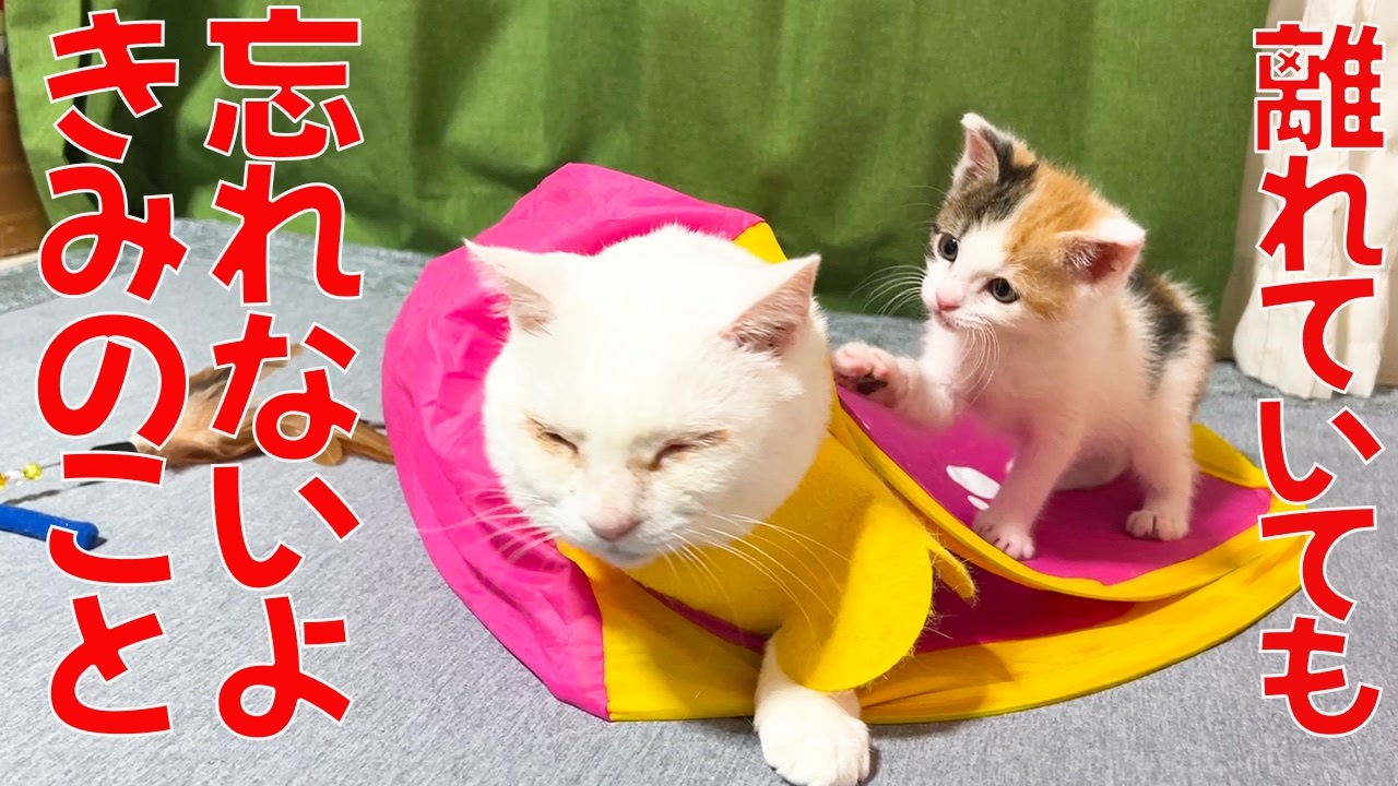 巣立ち前の三毛子猫、猫型珍獣との別れのとき 6:14