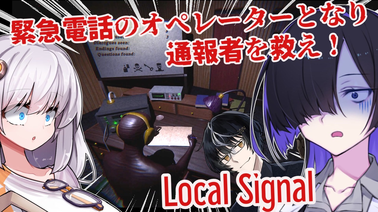 夜語トバリ、紲星あかり、黒聡鵜月が、海外のADVゲームに挑むようです。<br><br>◎あらすじ◎<br>主人公は緊急電話のオペレーターだ。<br>通報者は記憶を失い、見知らぬ屋敷で目を覚ましたようだ。<br>通報者を安全な場所に誘導し、命を救えるだろうか…?<br><br>※投稿者のガバ翻訳付きです。<br>配信ページ 日本語非対応<br><a href="https://yerkoandrei.itch.io/local-signal" target="_blank" rel="noopener nofollow">https://yerkoandrei.itch.io/local-signal</a><br><br>VOICEVOX:ずんだもん<br>VOICEVOX:青山龍星<br>VOICEVOX:麒ヶ島 宗麟<br><a href="https://voicevox.hiroshiba.jp/" target="_blank" rel="noopener nofollow">https://voicevox.hiroshiba.jp/</a><br><br>COEIROINK:黒聡鵜月<br>COEIROINK:AI声優-青葉<br><a href="https://coeiroink.com" target="_blank" rel="noopener nofollow">https://coeiroink.com</a><br><br>BGMをお借りしました。<br><a href="https://otologic.jp/" target="_blank" rel="noopener nofollow">https://otologic.jp/</a><br><br>背景画像をお借りしました<br><a href="https://nanamiyuki.com/" target="_blank" rel="noopener nofollow">https://nanamiyuki.com/</a><br><a href="http://aomarujp.blog.fc2.com/" target="_blank" rel="noopener nofollow">http://aomarujp.blog.fc2.com/</a><br><a href="https://www.pakutaso.com/" target="_blank" rel="noopener nofollow">https://www.pakutaso.com/</a><br><a href="https://www.photo-ac.com/" target="_blank" rel="noopener nofollow">https://www.photo-ac.com/</a><br><a href="https://www.ac-illust.com/" target="_blank" rel="noopener nofollow">https://www.ac-illust.com/</a>