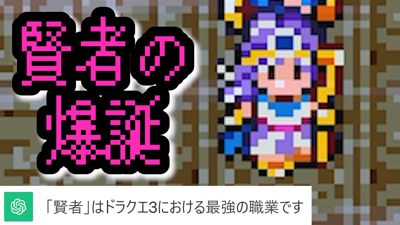 <br><strong>ついに!転職の時!</strong><br><br><span style="color: #ff0000;">~基本ルール~-</span><br>①GPTは勇者を殺す為の行動を取る<br>②GPTは魔法使いのキャラとして作成し、その操作は<br>この全ルールを把握したchatGPTに都度聞いて任せる。<br>③GPTはわざと自殺・MP回復拒否するような行動は取れない<br>④GPTはパーティの1番前か1番後ろに配置させる<br>⑤GPTの持ち物や呪文はGPTの意思でしか移動・使用できない<br>⑥買い物時は全てプレイヤーの自由にできる<br>⑦リセットや、データを消去して1からやり直しても良い<br>⑧経験値を伴わない裏での金稼ぎ作業時のみルール全て例外とする<br><br><span style="color: #0000ff;">~禁じ手~</span><br>①操作キャラでGPTに危害を加える行為(危害=ダメージや悪い状態異常など)<br>※メダパニで混乱したせいで殴る、などは許される<br>②戦闘中にGPTが死んだ際に放置(その次のターン中に蘇生させなければいけない)<br>③戦闘開始or終了時にGPTが死んでいる<br>④GPTのMPが0か1の時にHP回復の選択(蘇生も)を<br>GPT以外のメンバーに対して取る ※宿屋系はOK<br>⑤GPT以外の仲間がマホカンタ状態になる<br>⑥GPTがいない状態で戦闘を開始or続けるor勝利(バシルーラ等でいなくなったら逃げる行動のみ可)<br><br><span style="color: #38761d;">勇者が死ぬ or 上記を破る度にGPTに強制リセット。「リセット」をする度にGPTに1pt。<br>50pt貯まったらGPTの勝ち。企画終了。</span><br><br><strong>【次】 下のシリーズから飛んでね<br>【part1】 <a href="https://www.nicovideo.jp/watch/sm42595666" class="watch">sm42595666</a> 【投稿動画まとめ】 <a href="https://www.nicovideo.jp/mylist/32090282" target="_blank" rel="noopener">mylist/32090282</a></strong><br><br><span style="color: red;"><strong>▼投稿者情報▼</strong></span><br>【 Twitter 】 <a href="https://twitter.com/wakou2525" target="_blank" rel="noopener nofollow">https://twitter.com/wakou2525</a><br>【生放送コミュ】 co1668349<br>【意見・連絡先】 wakou2525otayori@yahoo.co.jp