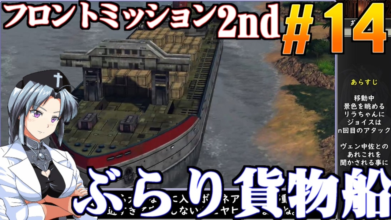 初カプコン製のヘリと攻撃機なので初投稿です。<br>MISSION12.貨物船上迎撃戦<br><br>◆FRONT MISSION 2nd:REMAKE◆<br>1997年スクウェアより発売されたSRPG<br>バングラデシュから国名を改めたアジアの国、アロルデシュを巡る陰謀と<br>二足歩行戦車・ヴァンツァーでの戦いをえがいた作品。<br>2023年10月5日switch版発売<br>本プレイはswitch版の桜乃そら実況動画<br><br>◆ニコニコクリエイターサポート<br><a href="https://creator-support.nicovideo.jp/registration/1203831" target="_blank" rel="noopener nofollow">https://creator-support.nicovideo.jp/registration/1203831</a><br>動画制作の励みになります<br><br>◆Twitter<br><a href="https://twitter.com/ikamono8bit" target="_blank" rel="noopener nofollow">https://twitter.com/ikamono8bit</a><br>◆youtube<br><a href="http://www.youtube.com/c/IkamonoY" target="_blank" rel="noopener nofollow">http://www.youtube.com/c/IkamonoY</a><br><br>シリーズまとめ <a href="https://www.nicovideo.jp/user/1203831/series" target="_blank" rel="noopener nofollow">https://www.nicovideo.jp/user/1203831/series</a><br>作った動画全部 <a href="https://www.nicovideo.jp/mylist/42963985" target="_blank" rel="noopener">mylist/42963985</a><br>作った動画全部2<a href="https://www.nicovideo.jp/mylist/70404393" target="_blank" rel="noopener">mylist/70404393</a><br>FM1シリーズ <a href="https://www.nicovideo.jp/mylist/44840712" target="_blank" rel="noopener">mylist/44840712</a><br>FM2シリーズ <a href="https://www.nicovideo.jp/mylist/49797840" target="_blank" rel="noopener">mylist/49797840</a><br>FM3シリーズ <a href="https://www.nicovideo.jp/mylist/53164228" target="_blank" rel="noopener">mylist/53164228</a><br>FM4シリーズ <a href="https://www.nicovideo.jp/mylist/58678376" target="_blank" rel="noopener">mylist/58678376</a><br>FM5シリーズ <a href="https://www.nicovideo.jp/mylist/62245527" target="_blank" rel="noopener">mylist/62245527</a>