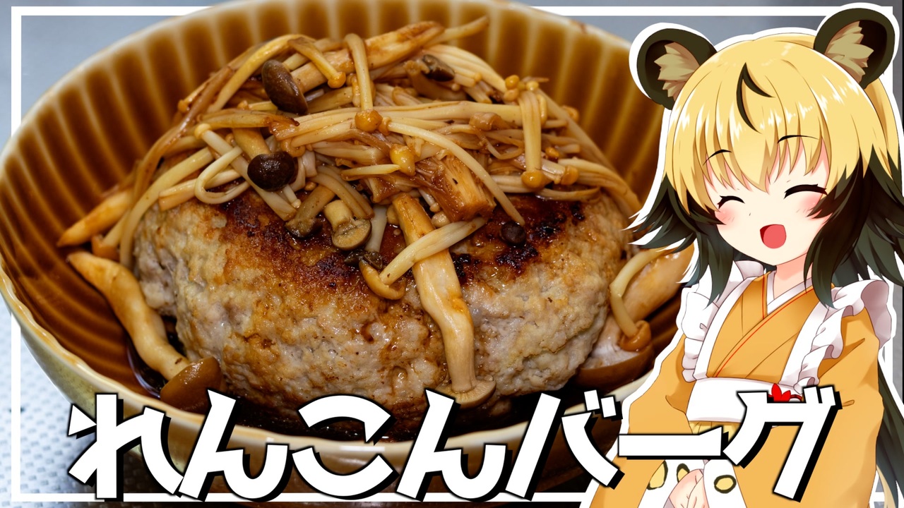 今回はほくほくで軽い食感を楽しめる「れんこんバーグ」を作っていきましょう!<br><br>以前の動画(<a href="https://www.nicovideo.jp/watch/sm42879620" class="watch">sm42879620</a>)で、「れんこんを使ったことない」というコメントを頂きました。<br>他にもX(旧:twitter)で聞いたところ、生煮えで困った経験がある方もいらっしゃいます。<br>れんこんはそのまま使うとコリコリとした食感を楽しめる食材ですが、今回はれんこんを一工夫することで別の食感を楽しめるようにしていきたいと思います。<br><br>ハンバーグですが、豆腐ハンバーグのように見た目よりも軽く、でも食物繊維もたっぷり取れて満足感を得られるレシピですよ。<br><br><調理ポイント><br>1.繊維がほぐれるようにしっかり肉ダネを混ぜること<br>2.蒸らし時間を長めにしてもいいので、中までしっかり熱を通しましょう<br><br><br>■材料(2人分)<br>・豚ひき肉 300g<br>・れんこん 80g<br>・卵 1個<br>・塩 お好みの量<br>・こしょう お好みの量<br>・料理酒 大さじ1<br><br>たれ<br>・えのき 50g<br>・しめじ 50g<br>・ポン酢 大さじ2<br><br>汁物<br>・れんこんの絞り汁<br>・水 250mL<br>・おろし生姜 小さじ2<br>・お好みの具材<br><br>■所要時間<br>作業時間:30分程度<br><br>youtube:<a href="https://youtu.be/o-AJRO9PcPY" target="_blank" rel="noopener nofollow">https://youtu.be/o-AJRO9PcPY</a><br>twitter:@lycaon_kitchen<br><br>りおんの和風喫茶:<a href="https://www.nicovideo.jp/series/77190" target="_blank" rel="noopener">series/77190</a><br>おつかれごはん:<a href="https://www.nicovideo.jp/series/155690" target="_blank" rel="noopener">series/155690</a><br>手作り和菓子でちょっとひとやすみしませんか?:<a href="https://www.nicovideo.jp/series/155691" target="_blank" rel="noopener">series/155691</a><br><br>立ち絵:星華 彩二魔 様<br>イラスト:AWD kitchen<br>音源:DOVA-SYNDROME<br>音声:AI.VOICE 紲星あかり+ exVOICE