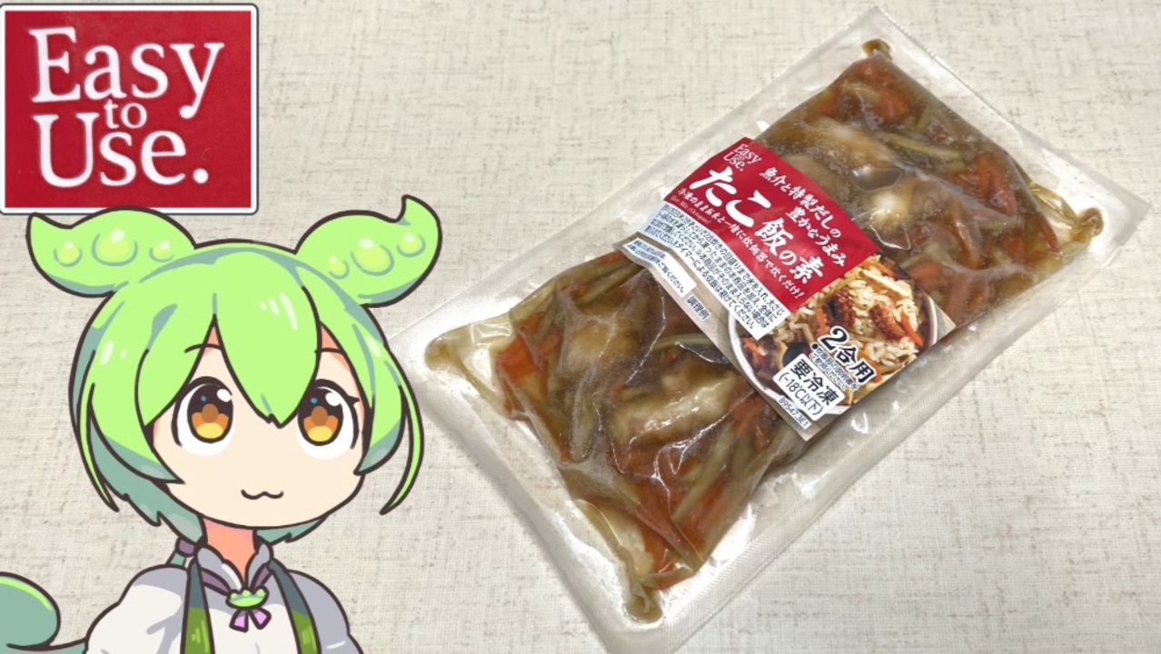 冷凍のたこ飯の素です。<br><br><br>【参考】<br>イージートゥユース たこ飯の素(トップバリュ)<br><a href="https://www.topvalu.net/items/detail/4549414539547/" target="_blank" rel="noopener nofollow">https://www.topvalu.net/items/detail/4549414539547/</a><br>青森県産青天の霹靂(トップバリュ)<br><a href="https://www.topvalu.net/items/detail/4549741438520/" target="_blank" rel="noopener nofollow">https://www.topvalu.net/items/detail/4549741438520/</a><br>愛媛県 たこ飯(郷土料理物語)<br><a href="https://kyoudo-ryouri.com/food/413.html" target="_blank" rel="noopener nofollow">https://kyoudo-ryouri.com/food/413.html</a><br>愛知県 たこ飯(農林水産省 うちの郷土料理)<br><a href="https://www.maff.go.jp/j/keikaku/syokubunka/k_ryouri/search_menu/menu/takomeshi_aichi.html" target="_blank" rel="noopener nofollow">https://www.maff.go.jp/j/keikaku/syokubunka/k_ryouri/search_menu/menu/takomeshi_aichi.html</a><br><br><br>【使用した素材】(※敬称略)<br>(合成音声)VOICEVOX/ずんだもん/四国めたん/<br><a href="https://voicevox.hiroshiba.jp/" target="_blank" rel="noopener nofollow">https://voicevox.hiroshiba.jp/</a><br>(立ち絵)坂本アヒル<br><a href="https://seiga.nicovideo.jp/seiga/im10788496" target="_blank" rel="noopener">im10788496</a>/<a href="https://seiga.nicovideo.jp/seiga/im10791276" target="_blank" rel="noopener">im10791276</a><br>(楽曲)甘茶の音楽工房/「楽しい麦畑」「フルーツパフェ」「お城の舞踏会」<br><a href="https://amachamusic.chagasi.com/" target="_blank" rel="noopener nofollow">https://amachamusic.chagasi.com/</a><br>(イラスト)かわいいフリー素材集 いらすとや