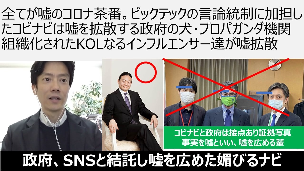日本国独立宣言論 私は独立を宣言する 真田信秋(紙と電子書籍)<br><a href="https://www.amazon.co.jp/dp/B0CT86DX9G/" target="_blank" rel="noopener nofollow">https://www.amazon.co.jp/dp/B0CT86DX9G/</a><br><br>コロンビアの購入契約書 infact<br><a href="https://infact.press/2021/11/post-14514/" target="_blank" rel="noopener nofollow">https://infact.press/2021/11/post-14514/</a><br><br>高橋清隆さんの文書館<br><a href="http://blog.livedoor.jp/donnjinngannbohnn/" target="_blank" rel="noopener nofollow">http://blog.livedoor.jp/donnjinngannbohnn/</a><br><br>新型コロナワクチンに関する内部資料に記され<br>た「KOL」というインフルエンサーの存在【ワクチンのファクト⑫】<br><a href="https://infact.press/2022/02/post-19332/?fbclid=IwAR1nwu7GQcgT5OqDaGu2fqj4Z0JlRNZ_94EhhHNGKYfm9zb9bRoe2bHv-HQ" target="_blank" rel="noopener nofollow">https://infact.press/2022/02/post-19332/?fbclid=IwAR1nwu7GQcgT5OqDaGu2fqj4Z0JlRNZ_94EhhHNGKYfm9zb9bRoe2bHv-HQ</a><br><br>Key Opinion Leader(キーオピニオンリーダー)の説明<br><a href="https://answers.ten-navi.com/dictionary/cat04/112/" target="_blank" rel="noopener nofollow">https://answers.ten-navi.com/dictionary/cat04/112/</a><br><br>厚労省やYoutubeとも連携する、「こびナビ」とは何か? 【ワクチンのファクト⑯】<br><a href="https://infact.press/2022/11/post-21065/" target="_blank" rel="noopener nofollow">https://infact.press/2022/11/post-21065/</a><br><br>政府・厚労省との「こびナビ」の「第三者性」に問題はないのか?「こびナビ」の回答は【ワクチンのファクト⑰】<br><a href="https://infact.press/2022/12/post-21126/" target="_blank" rel="noopener nofollow">https://infact.press/2022/12/post-21126/</a><br><br>readyforというクラウドファンディングサイトで、コビナビは30,325,000円の寄付を1999人から獲得<br><a href="https://readyfor.jp/projects/cov-navi/accomplish_report" target="_blank" rel="noopener nofollow">https://readyfor.jp/projects/cov-navi/accomplish_report</a><br><br>厚労省やYoutubeとも連携する、「こびナビ」とは何か? 【ワクチンのファクト⑯】という記事では、infactさんがコビナビとの質疑応答を公開しており、ますます怪しさが伝わってきました。<br><a href="https://infact.press/2022/11/post-21065/?fbclid=IwAR2130UEQrSSNpzeGBCTStxZhmAm3xAMUVc8wUGzWTGqIVPO-JtazZQPtSo" target="_blank" rel="noopener nofollow">https://infact.press/2022/11/post-21065/?fbclid=IwAR2130UEQrSSNpzeGBCTStxZhmAm3xAMUVc8wUGzWTGqIVPO-JtazZQPtSo</a><br><br>コビナビのサイト<br><a href="https://covnavi.jp/about/#member" target="_blank" rel="noopener nofollow">https://covnavi.jp/about/#member</a><br>
