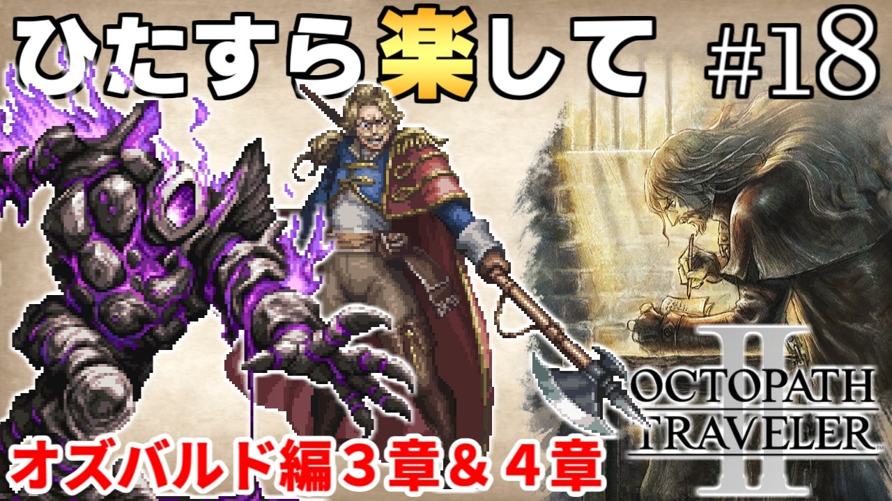 オズバルド編3章&4章<br><br>プレイ条件<br>1.最少勝利回数でラスボス&裏ボス撃破<br>2.必須戦闘以外で稼がない(捕獲・集金・盗む)<br>3.道中のアイテムは拾わない(宝箱・隠されたアイテム)<br>4.道中では確率に頼らない(確率系のFC・確率系の一緒に商売禁止)<br>5.傭兵よび・スケジュール交渉・加勢・摩訶不思議の舞・幸運の矢禁止<br>6.編集は頑張らない<br>※申し訳ないがバグ利用は全面的にNG<br><br><a href="https://www.nicovideo.jp/watch/sm42930696" class="watch">sm42930696</a>←前|次→<a href="https://www.nicovideo.jp/watch/sm42995932" class="watch">sm42995932</a><br>part1→<a href="https://www.nicovideo.jp/watch/sm42436125" class="watch">sm42436125</a><br>再生リスト→<a href="https://www.nicovideo.jp/mylist/75397576" target="_blank" rel="noopener">mylist/75397576</a><br><br>ひたすら楽してオクトラ1はこちら→<a href="https://www.nicovideo.jp/watch/sm37813793" class="watch">sm37813793</a><br><br>他の挑戦シリーズとか→<a href="https://www.nicovideo.jp/mylist/3220744" target="_blank" rel="noopener">mylist/3220744</a> <br>YouTube版→<a href="https://goo.gl/oey5Y7" target="_blank" rel="noopener nofollow">https://goo.gl/oey5Y7</a><br>ニコニコニュースのインタビュー記事→<a href="https://originalnews.nico/284602" target="_blank" rel="noopener nofollow">https://originalnews.nico/284602</a><br><br>© 2023 SQUARE ENIX CO., LTD. All Rights Reserved.