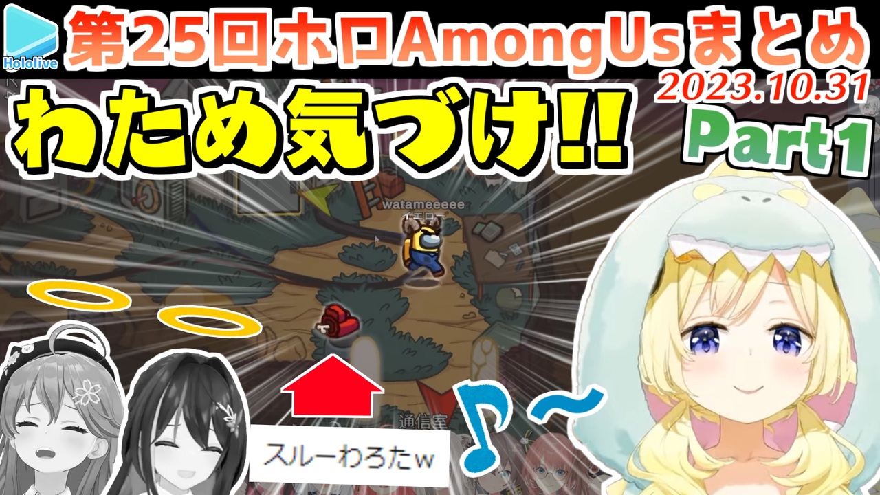 <a href="#" class="seekTime" data-seekTime="00:00" onclick="seekNicoPlayer('#00:00'); return false;">#00:00</a> 第1試合 わため・ぼたん<br><a href="#" class="seekTime" data-seekTime="09:37" onclick="seekNicoPlayer('#09:37'); return false;">#09:37</a> 第2試合 みこ・AZKi<br><a href="#" class="seekTime" data-seekTime="21:25" onclick="seekNicoPlayer('#21:25'); return false;">#21:25</a> 第3試合 まつり・ぼたん<br><a href="#" class="seekTime" data-seekTime="30:43" onclick="seekNicoPlayer('#30:43'); return false;">#30:43</a> 第4試合 フブキ・わため<br><br>元動画様はこちら<br>【#ホロハロウィンAmongUs】HalloweenにハチャメチャAmongUS【白上フブキ/ホロライブ】<br><a href="https://youtu.be/Bk8D4-Tt8SI" target="_blank" rel="noopener nofollow">https://youtu.be/Bk8D4-Tt8SI</a><br><br>【#ホロハロウィンAmongUs】殺戮の限り【ホロライブ/夏色まつり】<br><a href="https://youtu.be/CTRt7Zm_4aQ" target="_blank" rel="noopener nofollow">https://youtu.be/CTRt7Zm_4aQ</a><br><br>【 #ホロハロウィンAmongUs 】とりっくおあえりーとだにぇ!【ホロライブ/さくらみこ】<br><a href="https://youtu.be/_OAXTZLe-w4" target="_blank" rel="noopener nofollow">https://youtu.be/_OAXTZLe-w4</a><br><br>【ホロハロウィンAmongUs】ころね支店【戌神ころね/ホロライブ】<br><a href="https://youtu.be/2clXVgdYdSY" target="_blank" rel="noopener nofollow">https://youtu.be/2clXVgdYdSY</a><br><br>【 ホロハロウィンAmongUs 】AmongUs約3年ぶりで震えるぜぇ!【角巻わため/ホロライブ4期生】<br><a href="https://youtu.be/2gZgfwkd5QM" target="_blank" rel="noopener nofollow">https://youtu.be/2gZgfwkd5QM</a><br><br>【Among Us】今夜はハロウィン、何も起こらないはずがなく… ホロハロウィンAmongUs【獅白ぼたん/ホロライブ】<br><a href="https://youtu.be/Vnu4cBuI2EQ" target="_blank" rel="noopener nofollow">https://youtu.be/Vnu4cBuI2EQ</a><br><br>【ホロハロウィンAmongUs】トリック・オア・トリート!【ホロライブ / AZKi】<br><a href="https://youtu.be/4qWU_r1Rx8U" target="_blank" rel="noopener nofollow">https://youtu.be/4qWU_r1Rx8U</a><br><br>【 #ホロハロウィンAmongUs 】愉快な愉快なハロウィンパーティ。【鷹嶺ルイ/ホロライブ】<br><a href="https://youtu.be/uS9h9oY4IwE" target="_blank" rel="noopener nofollow">https://youtu.be/uS9h9oY4IwE</a><br><br>フブキCh。白上フブキ <a href="https://t.co/R9TNhC7sPO" target="_blank" rel="noopener nofollow">https://t.co/R9TNhC7sPO</a><br>Matsuri Channel 夏色まつり <a href="https://t.co/6IbKSqaxIW" target="_blank" rel="noopener nofollow">https://t.co/6IbKSqaxIW</a><br>Miko Ch. さくらみこ <a href="https://t.co/FM8eBkuiOO" target="_blank" rel="noopener nofollow">https://t.co/FM8eBkuiOO</a><br>Korone Ch. 戌神ころね <a href="https://t.co/qeTXwRU2F1" target="_blank" rel="noopener nofollow">https://t.co/qeTXwRU2F1</a><br>Watame Ch. 角巻わため <a href="https://t.co/gE06SdvpNX" target="_blank" rel="noopener nofollow">https://t.co/gE06SdvpNX</a><br>Botan Ch.獅白ぼたん <a href="https://t.co/IWecN1QB4o" target="_blank" rel="noopener nofollow">https://t.co/IWecN1QB4o</a><br>AZKi Channel <a href="https://t.co/yd3bObJi1O" target="_blank" rel="noopener nofollow">https://t.co/yd3bObJi1O</a><br>Lui ch. 鷹嶺ルイ - holoX - <a href="https://t.co/FT5ZgISmcf" target="_blank" rel="noopener nofollow">https://t.co/FT5ZgISmcf</a><br /><span style="color: #b7b7b7; font-size: 10px;">ホロライブ切り抜き/なめたけ <a href="https://t.co/CBwJLnYR2c" target="_blank" rel="noopener nofollow">https://t.co/CBwJLnYR2c</a></span>