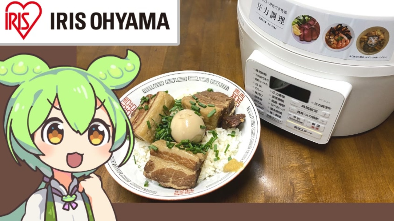(注意) 08:37<br>ビーフシチューを作る時、ルウを一緒にいれても美味しくできるよとありますが<br>蒸気口がふさがってしまう場合があり危険なので後入れにしてください。<br><br><br>前々から欲しかった電気圧力鍋。<br>ホームセンターバローでアイリスオーヤマ製の商品が安くなっていたので購入して<br>色々作ってみた感想になります。<br><br><br>【参考】<br>アイリスオーヤマ電気圧力鍋(アイリスオーヤマ)<br><a href="https://www.irisohyama.co.jp/e-pressure-cooker/4l/pc-ma4.html" target="_blank" rel="noopener nofollow">https://www.irisohyama.co.jp/e-pressure-cooker/4l/pc-ma4.html</a><br>ホームセンターバロー<br><a href="https://homecentervalor.co.jp/" target="_blank" rel="noopener nofollow">https://homecentervalor.co.jp/</a><br>HOME COORDY 電気圧力鍋 2.5L(トップバリュ)<br><a href="https://www.topvalu.net/items/detail/4549414087444/" target="_blank" rel="noopener nofollow">https://www.topvalu.net/items/detail/4549414087444/</a><br>電気圧力鍋の比較&選び方(ジョーシンwebショップ)<br><a href="https://joshinweb.jp/kitchen/ecpot.html" target="_blank" rel="noopener nofollow">https://joshinweb.jp/kitchen/ecpot.html</a><br>【2023年】電気圧力鍋のおすすめ10選!主な機能や魅力も解説(クラシル)<br><a href="https://www.kurashiru.com/articles/eab589c8-5f55-4b08-a0e2-16b7b4b94793" target="_blank" rel="noopener nofollow">https://www.kurashiru.com/articles/eab589c8-5f55-4b08-a0e2-16b7b4b94793</a><br>半熟煮卵のレシピ(覚えやすい黄金比のたれで)(白ご飯.com)<br><a href="https://www.sirogohan.com/recipe/nitamago/" target="_blank" rel="noopener nofollow">https://www.sirogohan.com/recipe/nitamago/</a><br>知識の宝庫!目がテン!ライブラリー ヘルシー⁉とり肉の謎<br><a href="https://www.ntv.co.jp/megaten/archive/library/date/04/11/1121.html" target="_blank" rel="noopener nofollow">https://www.ntv.co.jp/megaten/archive/library/date/04/11/1121.html</a><br>メキシカンポーク<br><a href="https://mexicanpork.org/?lang=ja" target="_blank" rel="noopener nofollow">https://mexicanpork.org/?lang=ja</a><br><br><br><br>【使用した素材】(※敬称略)<br>(合成音声)VOICEVOX/ずんだもん/四国めたん/<br><a href="https://voicevox.hiroshiba.jp/" target="_blank" rel="noopener nofollow">https://voicevox.hiroshiba.jp/</a><br>(立ち絵)坂本アヒル<br><a href="https://seiga.nicovideo.jp/seiga/im10788496" target="_blank" rel="noopener">im10788496</a>/<a href="https://seiga.nicovideo.jp/seiga/im10791276" target="_blank" rel="noopener">im10791276</a><br>(楽曲)甘茶の音楽工房/「楽しい麦畑」「フルーツパフェ」「お城の舞踏会」