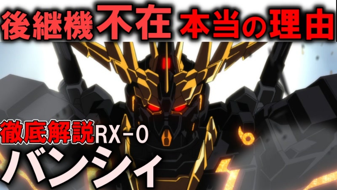 【後継機がいない本当の理由とは】RX-0ユニコーンガンダム2号機バンシィ解説【機動戦士ガンダムUC】<br><br>ガンダムUCのMS、RX-0ユニコーンガンダム2号機バンシィの性能を解説しながら、結局ユニコーンタイプは強いのか、なぜ後継機がいないのかなどを解説、考察していきます。<br><br>今回は解説と考察が同じくらいです。<br><br>正直リタちゃんとフェネクスはもっと強いと思ってました。<br>アナハイムが用意した強化人間よりも戦えないレベルだったのは・・・。<br>フロンタルが頭一つ抜けてるだけで、パイロット能力だけを見たらバナージも含めてみんなギュネイの壁を超えられてないのかもしれませんね。<br>ルガー・ルウちゃんがフロンタルよりも強いのなら話は変わりますが、流石にそれは無いでしょうし・・・。<br><br>でも流石にもう少し強いと思ってました。<br><br>現在連載中の小説はこちら:<br>異世界アイドル革命!死に戻り悪役令嬢は閃いた『こいつら全員アイドルにしてしまおう!』<br><a href="https://kakuyomu.jp/works/16817330662598051943" target="_blank" rel="noopener nofollow">https://kakuyomu.jp/works/16817330662598051943</a><br><br>質問、などありましたらこちらにも<br><a href="https://twitter.com/@i4S0LHspdgzBTor" target="_blank" rel="noopener nofollow">https://twitter.com/@i4S0LHspdgzBTor</a><br><br>清見元康名義でカクヨム、小説家になろう、たいあっぷなどに投稿しています。<br>もし良ければ応援お願いしますm(_ _)m<br><a href="https://kakuyomu.jp/users/GariD/works" target="_blank" rel="noopener nofollow">https://kakuyomu.jp/users/GariD/works</a><br><br>以前の作品(短編シリアス):<br>転生した厄災の大魔女はやがて聖女と呼ばれる<br><a href="https://ncode.syosetu.com/n0827ha/" target="_blank" rel="noopener nofollow">https://ncode.syosetu.com/n0827ha/</a><br><br>A.I.VOICE:結月ゆかり<br>VOICEVOX:ずんだもん<br><br>使用させていただいたずんだもん:<br>ずんだもん mini Deluxe(立ち絵) ver1.2<br><a href="https://seiga.nicovideo.jp/seiga/im10794509" target="_blank" rel="noopener nofollow">https://seiga.nicovideo.jp/seiga/im10794509</a><br><br>いつも広告、コメントありがとうございます。<br>励みになりますm(_ _)m<br>