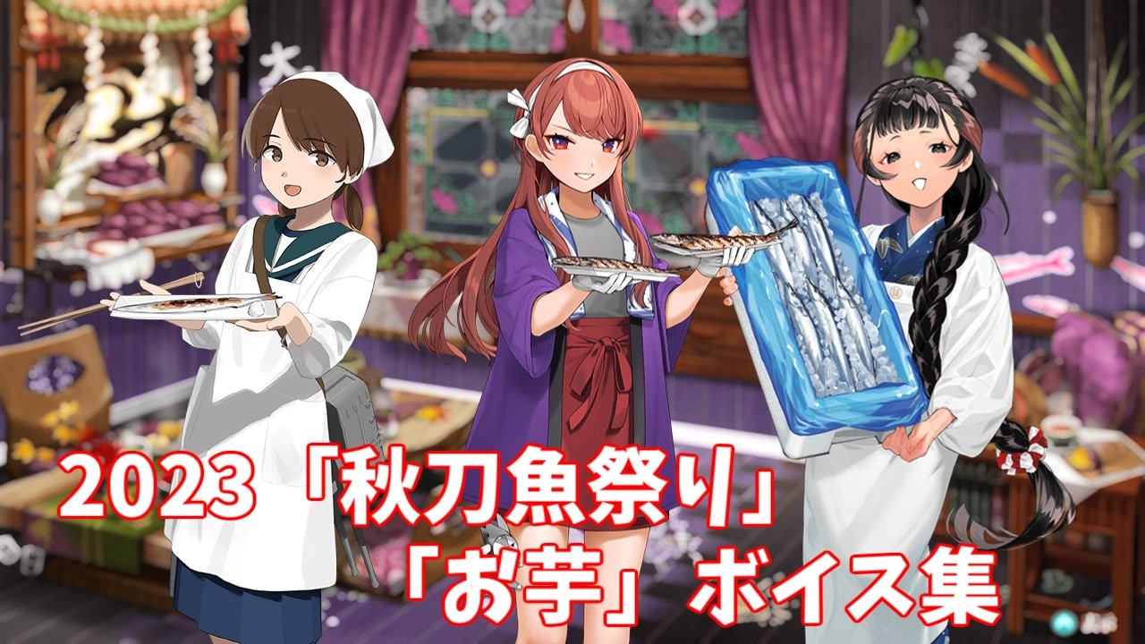 20隻の新規「秋刀魚祭り」「お芋」等のボイス集です。<br><br>期間限定ボイス(図鑑No.順)<br>(白雪 白露 時雨改三 春雨 清霜 Rodney 夕暮 Salmon 第二十二号海防艦 Javelin<br>能美 稲木 Tuscaloosa Nevada C.Cappellini Heywood_L._Edwards 熊野丸 第百一号輸送艦 朝日 白雲)<br>※前回収録し忘れていた第二十二号海防艦と白雲の秋ボイスも収録しています。<br><br>【新規絵】<br>(白雪 時雨改三 山汐丸改 Javelin Nevada/改/改Mod.2 熊野丸)<br><br>前|清霜改二 追加ボイス&2023「秋」ボイス集 (10/11アップデート) <a href="https://www.nicovideo.jp/watch/sm42882801" class="watch">sm42882801</a><br><strong>次|2023「クリスマス」ボイス集 (11/28アップデート) </strong><a href="https://www.nicovideo.jp/watch/sm43088373" class="watch">sm43088373</a><br><br>艦これ追加ボイス集 マイリスト(<a href="https://www.nicovideo.jp/mylist/40513442" target="_blank" rel="noopener">mylist/40513442</a>)<br>シリーズ(<a href="https://www.nicovideo.jp/series/34200" target="_blank" rel="noopener">series/34200</a>)<br><br>Youtubeでも活動しています。<br>チャンネル <a href="https://www.youtube.com/channel/UCTYYB9O7hiQlH6Ee-Xxlbpg" target="_blank" rel="noopener nofollow">https://www.youtube.com/channel/UCTYYB9O7hiQlH6Ee-Xxlbpg</a><br>