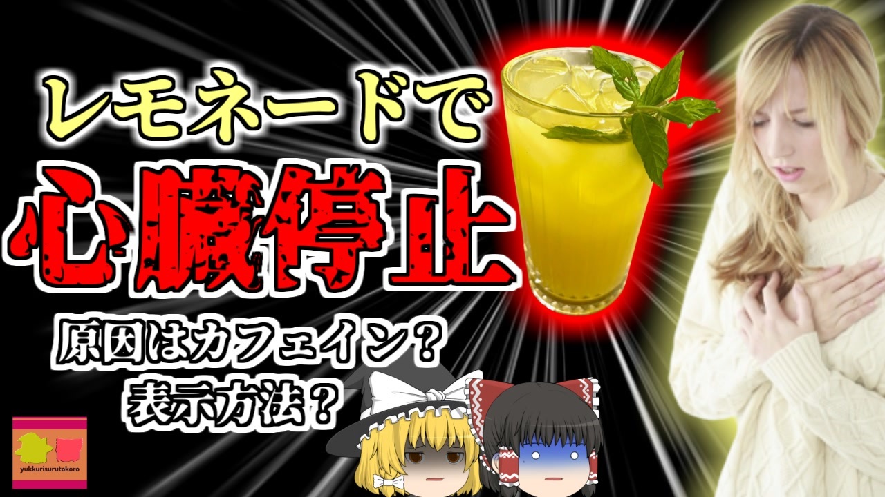 <a href="#" class="seekTime" data-seekTime="00:00" onclick="seekNicoPlayer('#00:00'); return false;">#00:00</a> 冒頭挨拶<br><a href="#" class="seekTime" data-seekTime="00:28" onclick="seekNicoPlayer('#00:28'); return false;">#00:28</a> 視聴上の注意<br><a href="#" class="seekTime" data-seekTime="1:05" onclick="seekNicoPlayer('#1:05'); return false;">#1:05</a> 本編開始<br><a href="#" class="seekTime" data-seekTime="1:30" onclick="seekNicoPlayer('#1:30'); return false;">#1:30</a> ファストカジュアル店<br><a href="#" class="seekTime" data-seekTime="2:41" onclick="seekNicoPlayer('#2:41'); return false;">#2:41</a> レモネード<br><a href="#" class="seekTime" data-seekTime="2:59" onclick="seekNicoPlayer('#2:59'); return false;">#2:59</a> 発作<br><a href="#" class="seekTime" data-seekTime="3:32" onclick="seekNicoPlayer('#3:32'); return false;">#3:32</a> 原因と背景<br><a href="#" class="seekTime" data-seekTime="4:56" onclick="seekNicoPlayer('#4:56'); return false;">#4:56</a> 訴訟とその理由<br><a href="#" class="seekTime" data-seekTime="7:38" onclick="seekNicoPlayer('#7:38'); return false;">#7:38</a> 一日のカフェイン摂取量<br><a href="#" class="seekTime" data-seekTime="9:17" onclick="seekNicoPlayer('#9:17'); return false;">#9:17</a> アメリカでの訴訟事情<br><br>今回紹介するのは、以前リクエストがありました、アメリカでのある飲料と疾患に関する事例です。アメリカ合衆国北東部に位置する、「ペンシルバニア州」の大学に通う女性「Aさん」はこの日、友人の誕生日パーティーに参加するため、家を出ました。<br>彼女は開催時刻よりも早い時間に家を出ていたため、時間をつぶすため、ファストフード店に入りました。<br>彼女はこの店の常連であり、ドリンクの年間パスを購入していたため、それを使ってLサイズレモネードを飲み、その後パーティーに向かいました。<br>しかし、その最中に彼女は心臓発作を起こし、意識を失いました。<br>その後彼女は病院へと搬送されて行きましたが、そのまま亡くなってしまいました。<br>その後、遺族はAさんがパーティー前に立ち寄っていた、ファストフード店に対し、損害賠償請求する訴訟を起こしました。<br>実は彼女は心臓の難病を患っており、カフェインを多くとってはいけない状態にありましたが、彼女があの時飲んでいたレモネードには、大量のカフェインが含まれており、遺族側は「店側の成分表示が不十分だった」と主張し・・・<br><br>引用・出展・参考<br>厚生労働省科学研究成果データベース<br>QT延長症候群の診断と管理<br><a href="https://ishort.ink/Jmwg" target="_blank" rel="noopener nofollow">https://ishort.ink/Jmwg</a><br>食品安全委員会 食品中のカフェインについて<br><a href="https://ishort.ink/tfrc" target="_blank" rel="noopener nofollow">https://ishort.ink/tfrc</a><br><br />※この動画は過去の事件を知り、現在でも同じことが発生する危険性を再認識、関与しないように促すための動画であり、視聴者を扇動、動揺を誘うためのコンテンツではありません。<br><br>ご要望にお応えして、メンバーシップの開設を行いました。<br>下記URLからも登録可能ですので、ご興味がある方は是非ご参加ください。<br><a href="https://www.youtube.com/channel/UCcT5a1J7XJW7CLYI2RKl4pw/join" target="_blank" rel="noopener nofollow">https://www.youtube.com/channel/UCcT5a1J7XJW7CLYI2RKl4pw/join</a><br><br><br>Twitter<br>→<a href="https://twitter.com/yukkurisurutoko" target="_blank" rel="noopener nofollow">https://twitter.com/yukkurisurutoko</a><br><br>取り急ぎ、簡易的にですがマイリストを作りました。<br>【ゆっくり解説】事故・事件関係紹介リスト <br><a href="https://www.nicovideo.jp/mylist/71034319" target="_blank" rel="noopener nofollow">https://www.nicovideo.jp/mylist/71034319</a><br>【ゆっくり解説】放射線系事故<br><a href="https://www.nicovideo.jp/mylist/71034368" target="_blank" rel="noopener nofollow">https://www.nicovideo.jp/mylist/71034368</a><br>【ゆっくり解説】鉄道系事故・事件関連<br><a href="https://www.nicovideo.jp/mylist/71034379" target="_blank" rel="noopener nofollow">https://www.nicovideo.jp/mylist/71034379</a>