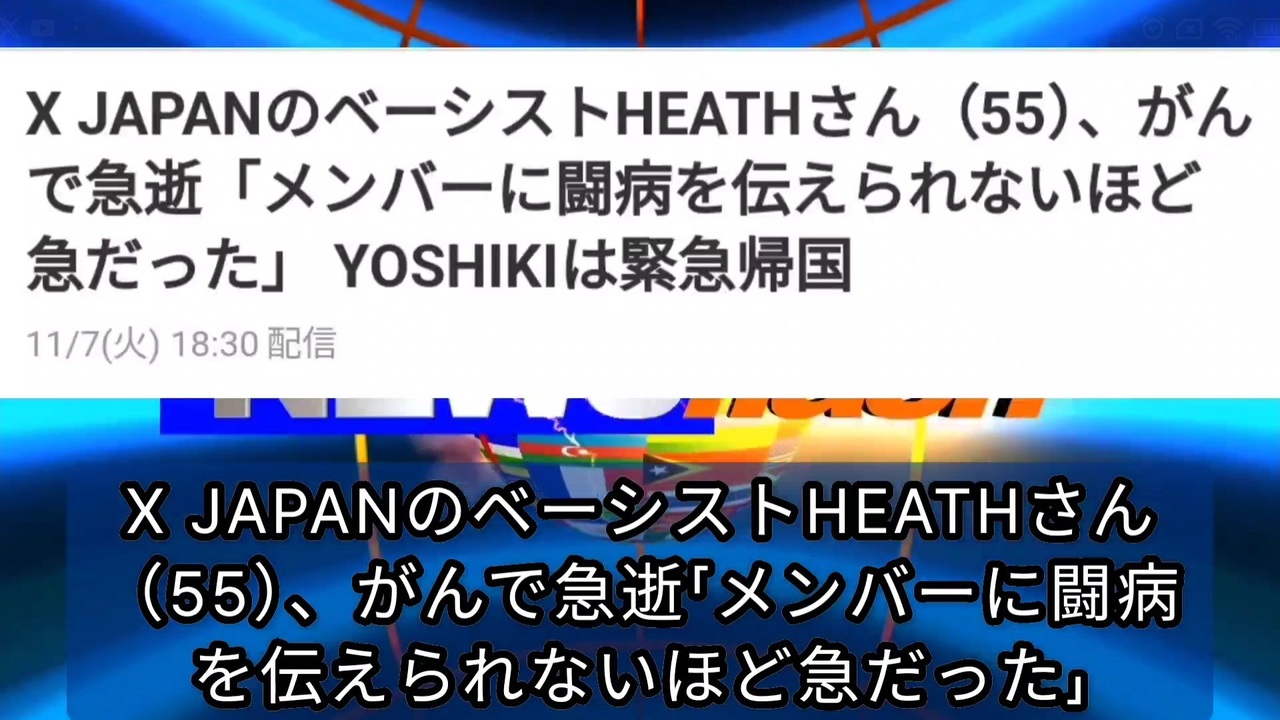X JAPANのベーシスト<br><br>HEATHさん癌で急逝。<br><br>発見から間もない展開<br><br>メンバーに伝える間もなかった。<br><br>体調不良が続き医者に行くと癌との診断。<br><br>かなり進行しており、癌の発見からわずかしか経っていない10月下旬までに帰らぬ人となった。<br><br>ターボ癌でしょうか。<br><br>ご冥福をお祈りいたします。<br><br><a href="https://t.co/eH8KZzkSId " target="_blank" rel="noopener nofollow">https://t.co/eH8KZzkSId </a><br><a href="https://t.co/eakB31jFXl" target="_blank" rel="noopener nofollow">https://t.co/eakB31jFXl</a><br><br><br><br><br><br>レペゼン DJまる <br>緊急入院で結核の診断 <br>VAIDS特有の症状。<br><br>片側の肺に2リットルの水が溜まっており、診断の結果「結核」。結核は免疫不全だと発症する危険性が「20倍~50倍」も高くなる。ワクチン誘発性免疫不全「VAIDS」なら、可能性もグッと上がるだろう。<br><br><a href="https://onl.sc/MnvafRQ" target="_blank" rel="noopener nofollow">https://onl.sc/MnvafRQ</a><br><br><br><br>大分からの痛ましいニュースである。<br><br>また、ファイザーのワクチンが女性を死に至らしめた。<br><br>別府市の56才の女性は、ワクチンを接種したら、次の日に死んだ。市民オンブズマンに薬害を追及され、認めざるを得なくなった<br><br><a href="https://onl.sc/3Y3wHT6" target="_blank" rel="noopener nofollow">https://onl.sc/3Y3wHT6</a><br><br><br><br>大分県 一時金支給決定<br><br>新型コロナウイルスのワクチンを<br>接種した翌日に亡くなった県内の50代の女性<br><br><a href="https://onl.sc/tB4VG2h" target="_blank" rel="noopener nofollow">https://onl.sc/tB4VG2h</a><br><br><br><br>とにかく凄い富士山撮る人<br>写真家の橋向真さん死去<br><br><a href="https://onl.sc/TmjBvbx" target="_blank" rel="noopener nofollow">https://onl.sc/TmjBvbx</a><br><br><br><br><br>みなさん。ワクチン開始後、各国の出生数の減少がシャレにならない状態になっています<br><br> <a href="https://t.co/l0hUQ21oCi" target="_blank" rel="noopener nofollow">https://t.co/l0hUQ21oCi</a><br><br><br><br><br><br><br><br />著作権、肖像権に配慮して作成しております。<br><br>◆気になったニュースの台本!?<br>メモ代わりに作った台本をそのままあげてます<br><a href="https://keiichiro8140.hatenablog.com/." target="_blank" rel="noopener nofollow">https://keiichiro8140.hatenablog.com/.</a><br><br><br>ここからはシリーズ紹介<br><br><br>◆ ワクチン解毒・デトックス<br><a href="https://x.gd/fZweg" target="_blank" rel="noopener nofollow">https://x.gd/fZweg</a><br><br>◆ウイリアム・マキス博士のがん治療(イベルメクチン・フェンベンダゾール等)<br><a href="https://x.gd/AtFYS" target="_blank" rel="noopener nofollow">https://x.gd/AtFYS</a><br><br>◆予防接種健康被害救済制度<br><a href="https://x.gd/0xK9x" target="_blank" rel="noopener nofollow">https://x.gd/0xK9x</a><br><br>◆気になったニュース #1501~<br><br>◆ 【ショートver】気になったニュース<br><a href="https://x.gd/7MxXC" target="_blank" rel="noopener nofollow">https://x.gd/7MxXC</a><br><br>◆ 気になったニュース #1001~<br><a href="https://x.gd/Lp8gv" target="_blank" rel="noopener nofollow">https://x.gd/Lp8gv</a><br><br>◆ 気になったニュース #501~<br><a href="https://x.gd/EmbS4" target="_blank" rel="noopener nofollow">https://x.gd/EmbS4</a><br><br>◆ 気になったニュース #1~#500<br><a href="https://x.gd/uPhNb" target="_blank" rel="noopener nofollow">https://x.gd/uPhNb</a><br><br>◆ X(旧Twitter)・テレグラムで気になった情報<br><a href="https://x.gd/YG6FT" target="_blank" rel="noopener nofollow">https://x.gd/YG6FT</a><br><br>◆ 日比谷5万人パレードデ⚪生放送アーカイブ動画<br><a href="https://x.gd/3CHJv" target="_blank" rel="noopener nofollow">https://x.gd/3CHJv</a><br><br>◆日比谷5万人パレード⚪モのマイリスト作ってみました<br><a href="https://nico.ms/mylist/76828848?ref=sp_other" target="_blank" rel="noopener nofollow">https://nico.ms/mylist/76828848?ref=sp_other</a><br><br>◆3.30 令和の百姓⚪⚪<br><a href="https://www.nicovideo.jp/series/511791?ref=garage_share_other" target="_blank" rel="noopener nofollow">https://www.nicovideo.jp/series/511791?ref=garage_share_other</a><br><br>◆ 及川幸久さんの【XNEWS】シリーズ<br><a href="https://x.gd/3k78K" target="_blank" rel="noopener nofollow">https://x.gd/3k78K</a><br><br>◆これまでの動画<a href="https://x.gd/sPXoJ" target="_blank" rel="noopener nofollow">https://x.gd/sPXoJ</a><br><br>◆もしも(BAN)の時のためのマイリンク集<a href="https://lit.link/K-16_News44" target="_blank" rel="noopener nofollow">https://lit.link/K-16_News44</a><br><br>